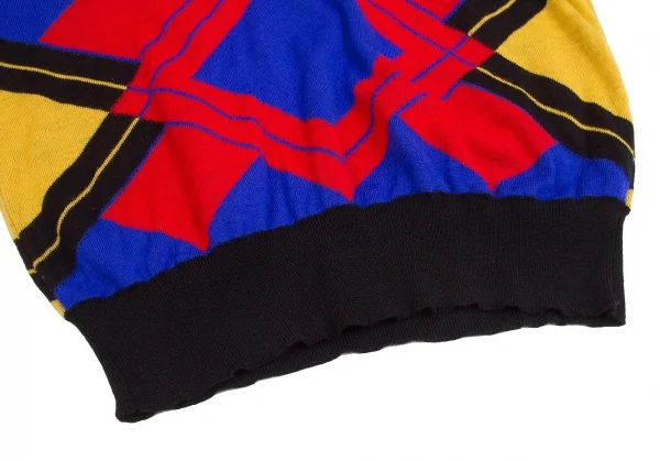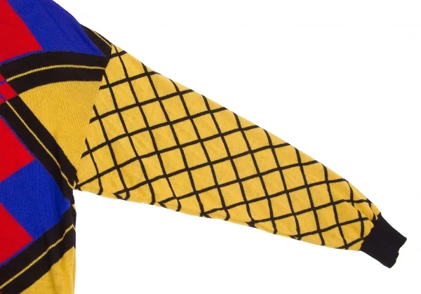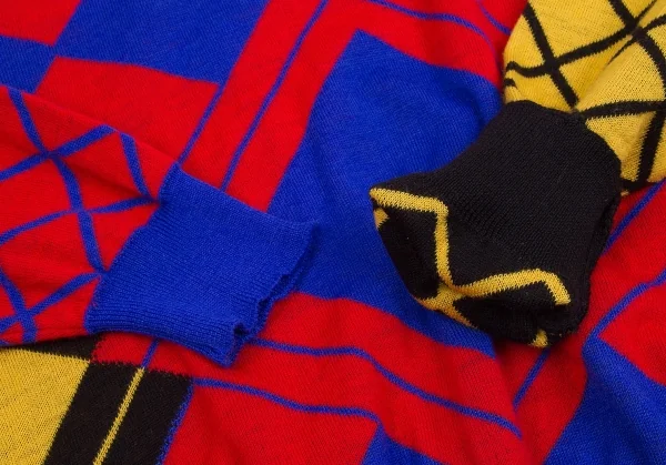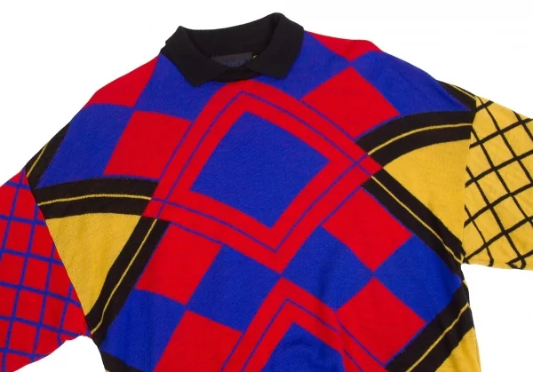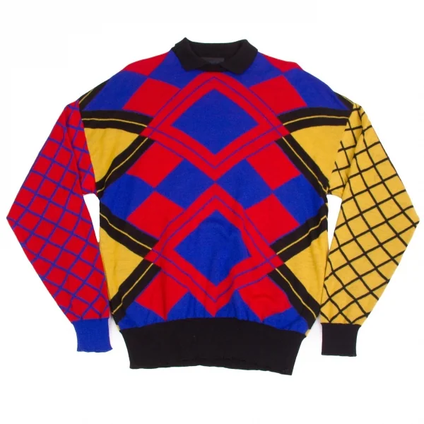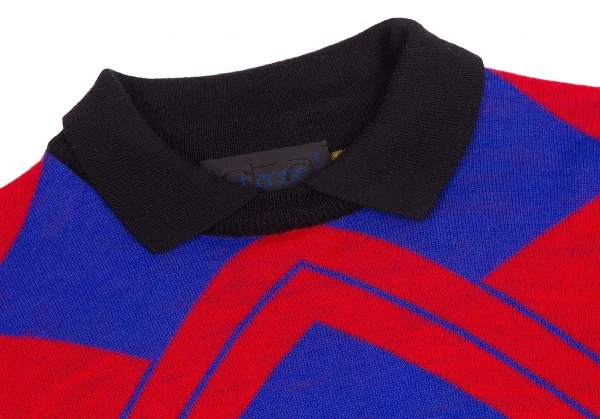 イスタンテistante 襟付きダイヤ柄カラフルニット 青赤黒48