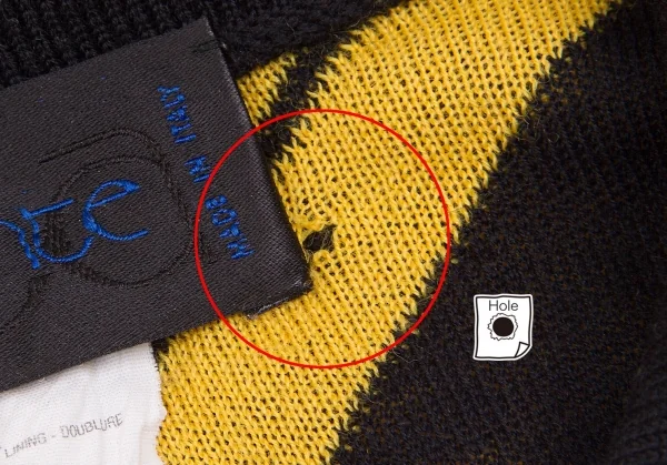 全体的に少し着用感あり、襟裏のタグを縫い付けている部分にほつれがあります(画像参照)。その他目立ったシミ・汚れ等ありません。クリーニング住み