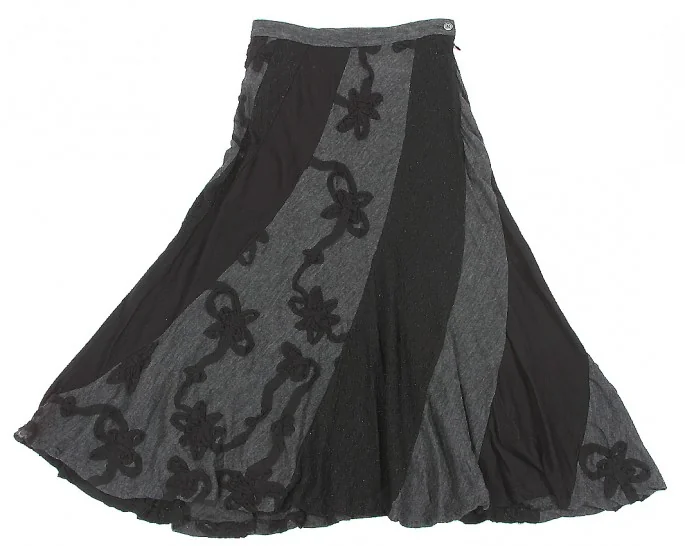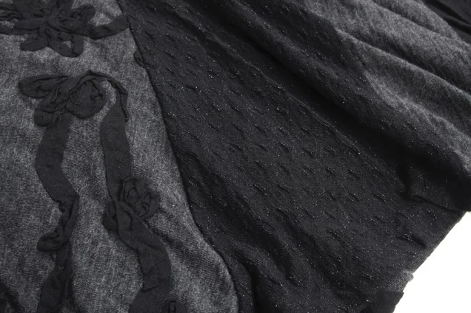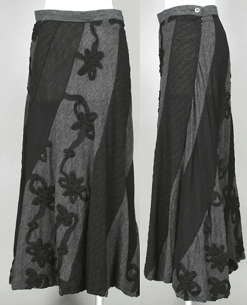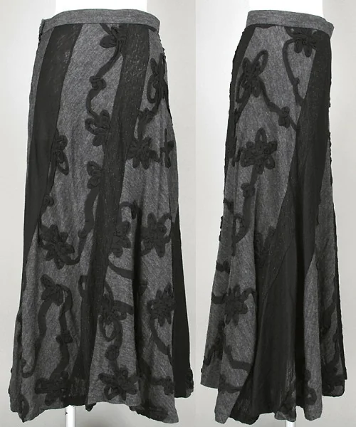 トリコ コムデギャルソンtricot COMME des GARCONSテープ刺繍デザイン剥ぎフレアースカート 黒グレーM