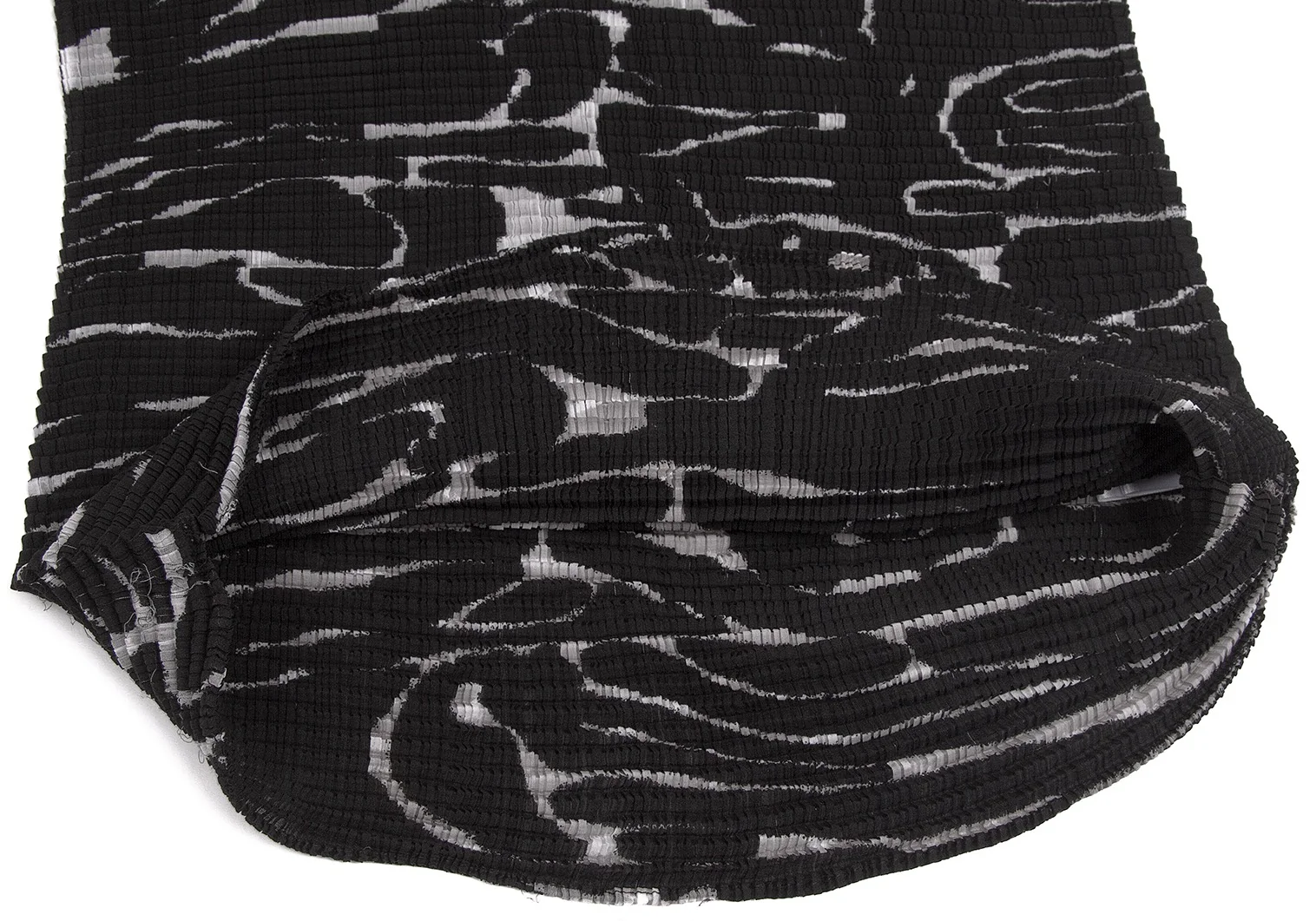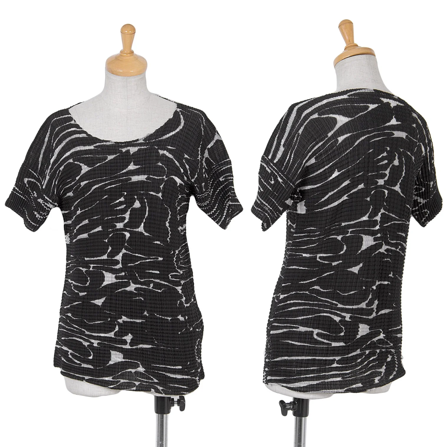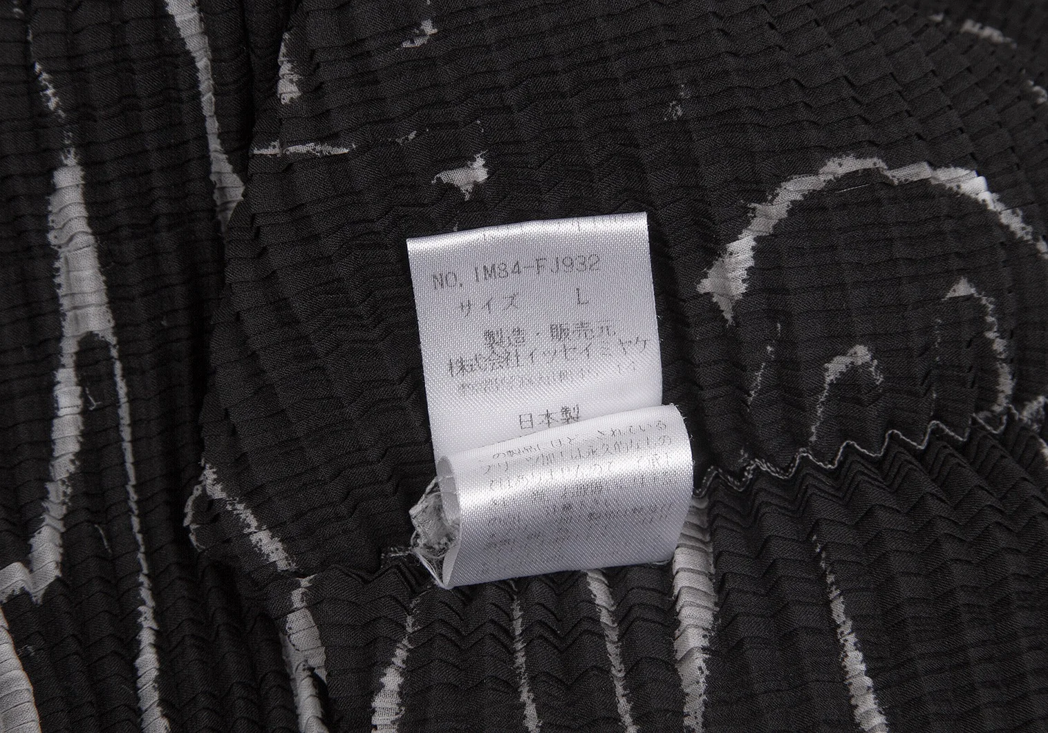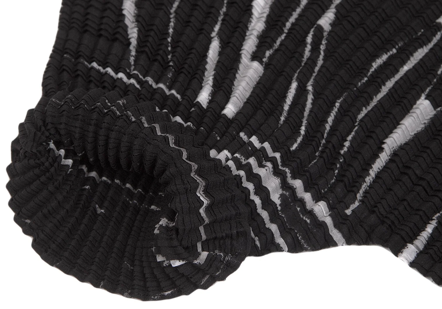 【SALE】イッセイミヤケISSEY MIYAKE モノクロプリントボックスプリーツハイネックTシャツ 黒白L