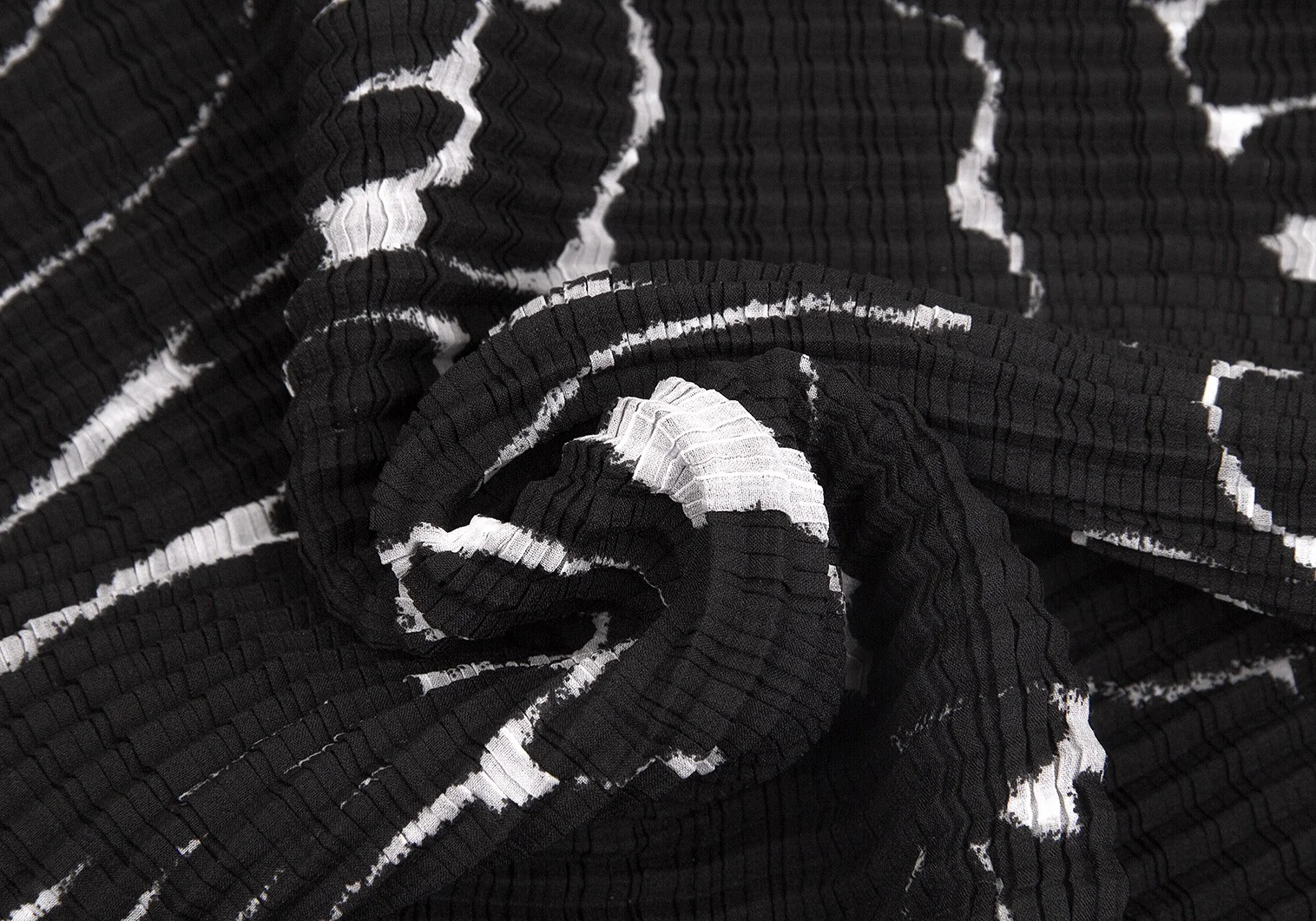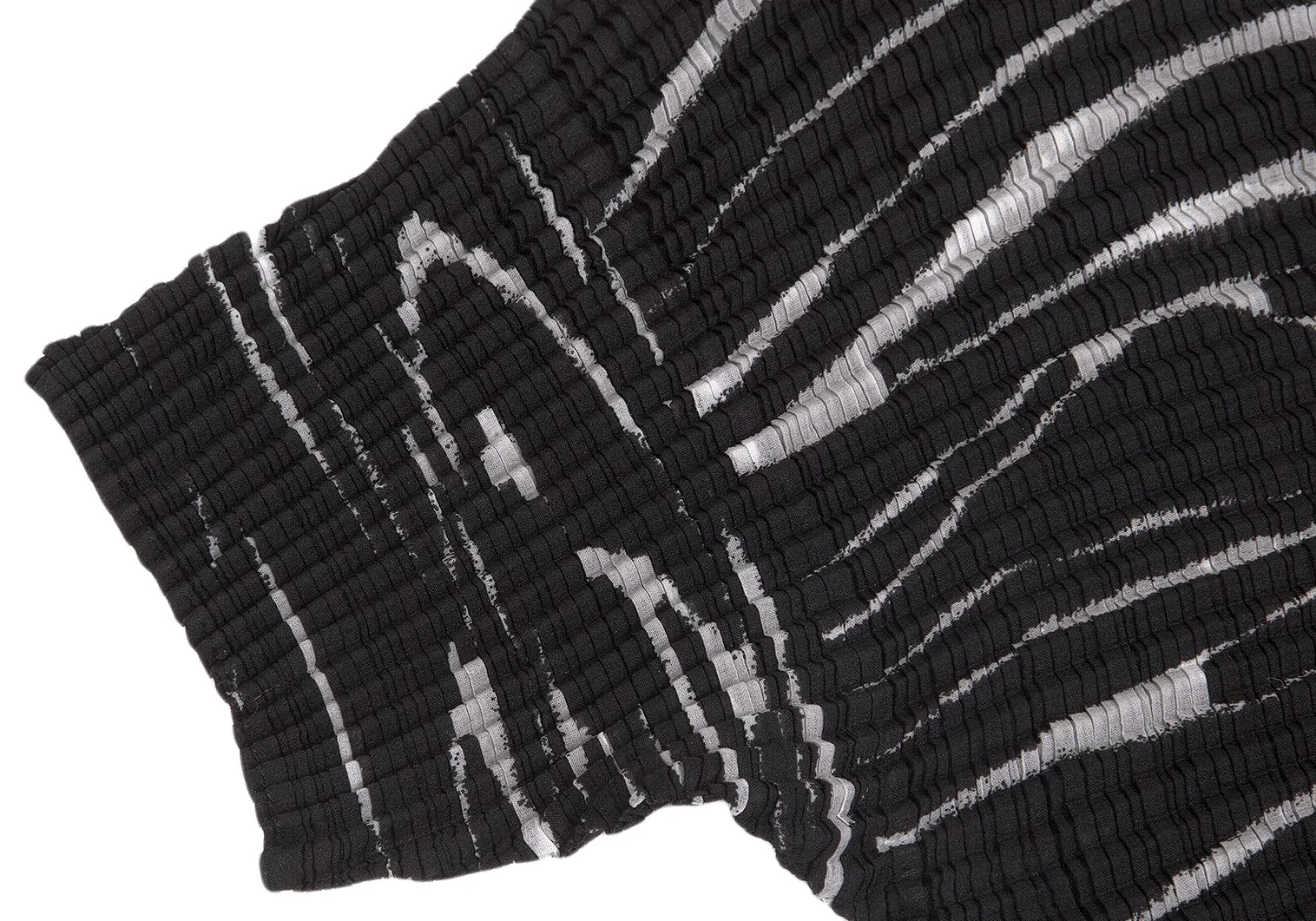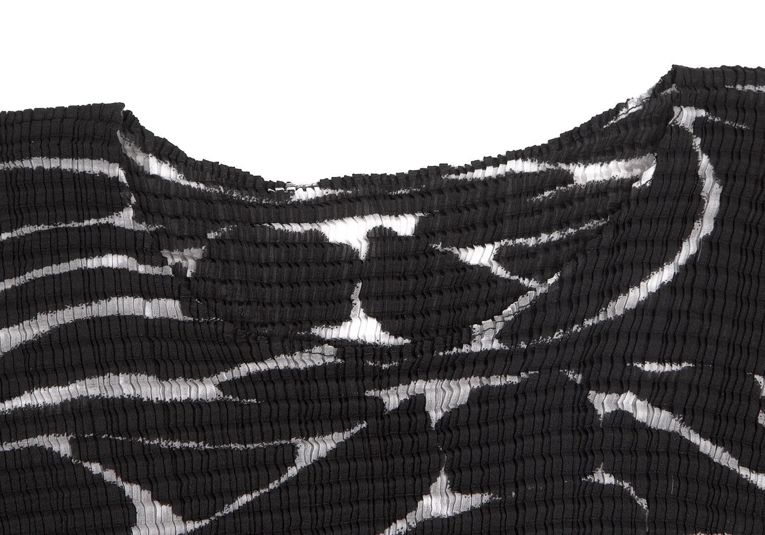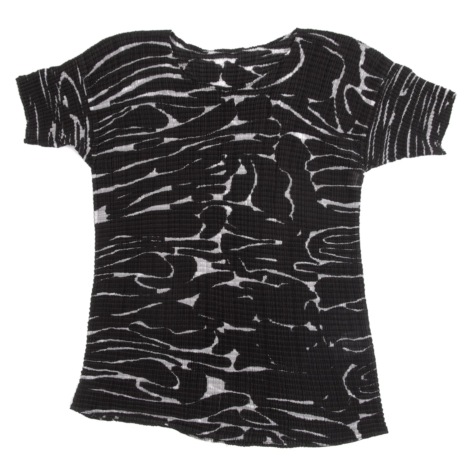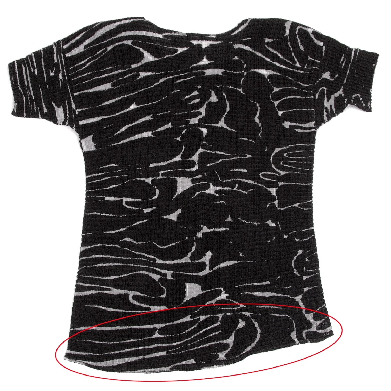 【SALE】イッセイミヤケISSEY MIYAKE モノクロプリントボックスプリーツハイネックTシャツ 黒白L