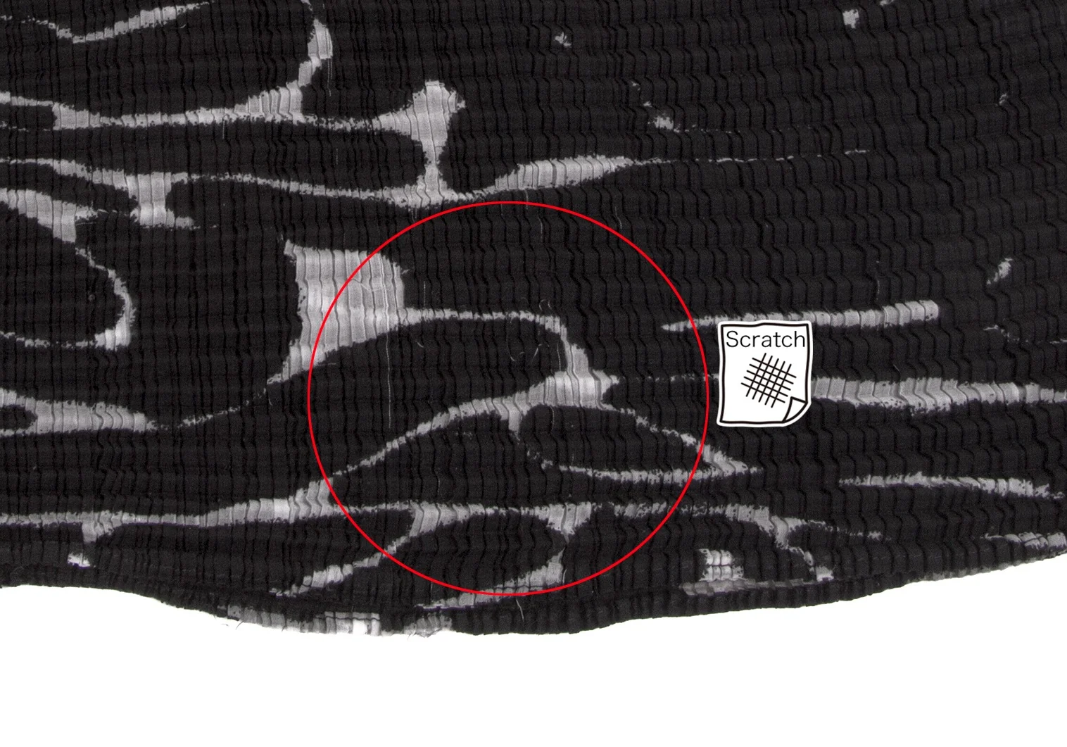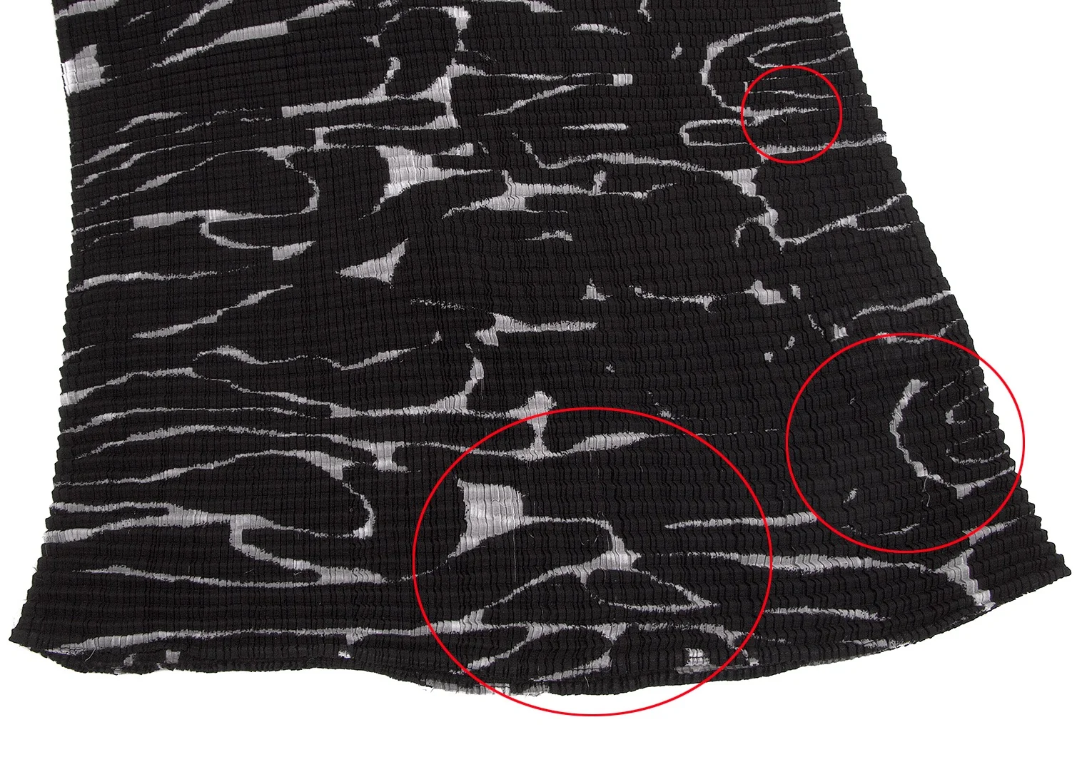 前身頃、前後裾に糸引きがあります。その他に目立ったシミ、汚れ、ほつれ等ありません。クリーニング済み