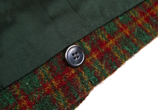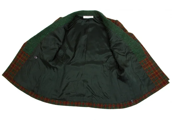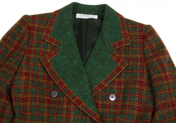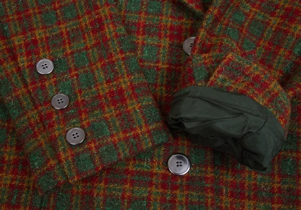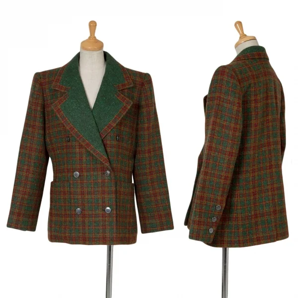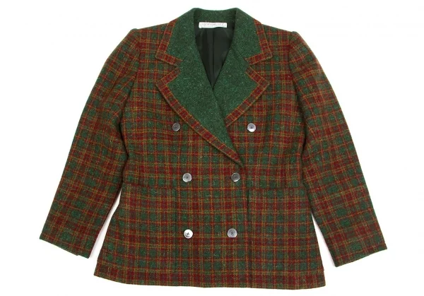ジバンシィGIVENCHY ダブルブレストチェックツイードジャケット グリーンL位