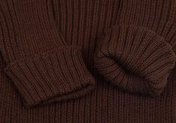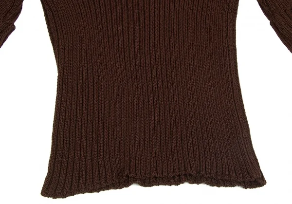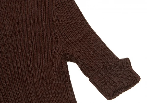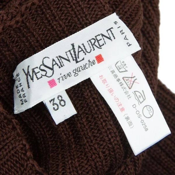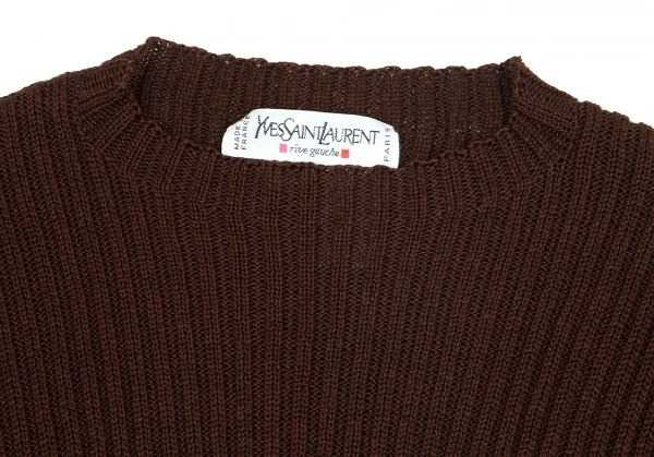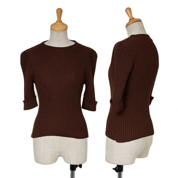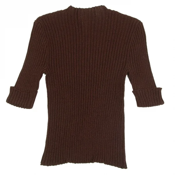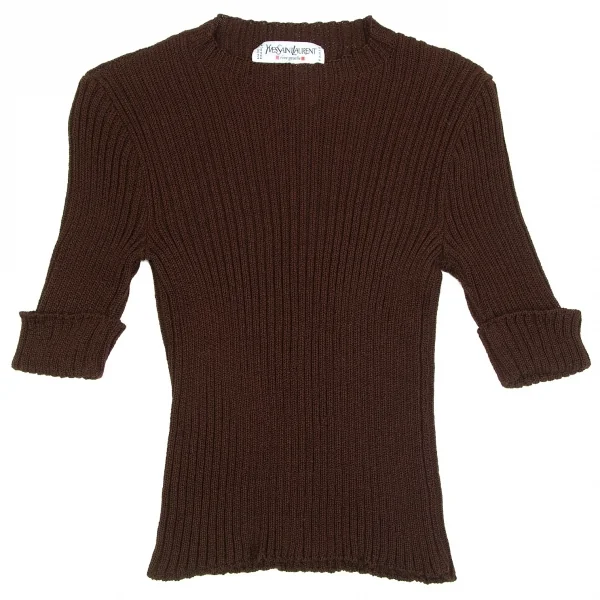 イヴサンローランYves Saint Laurent リブ編み五分袖コットンニット 茶38