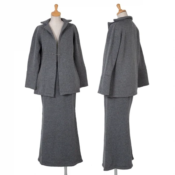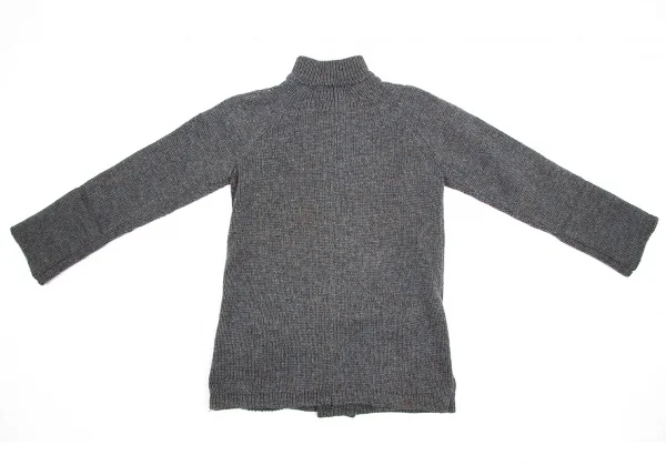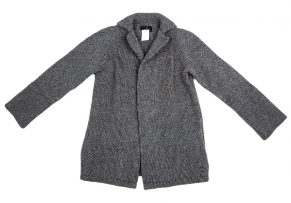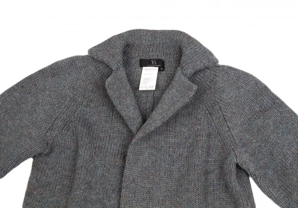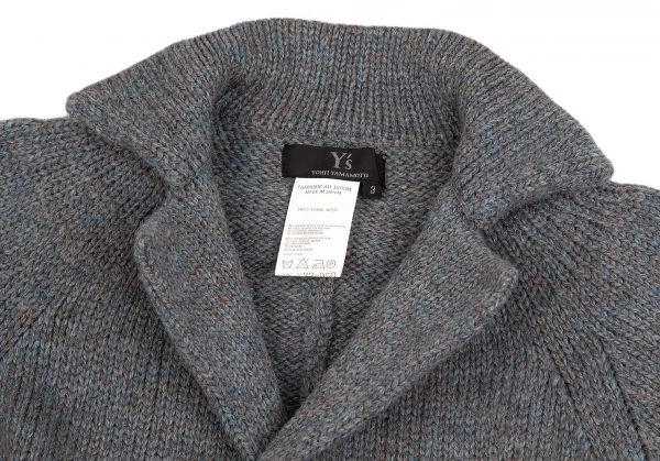 ワイズY's ボタンレスミックスニットジャケット 杢水色ベージュ3