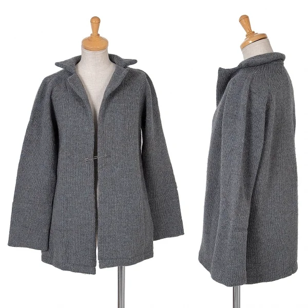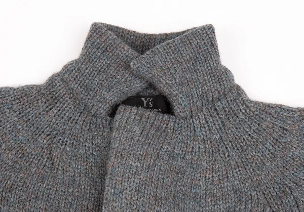 ワイズY's ボタンレスミックスニットジャケットセットアップスーツ 杢水色ベージュ3