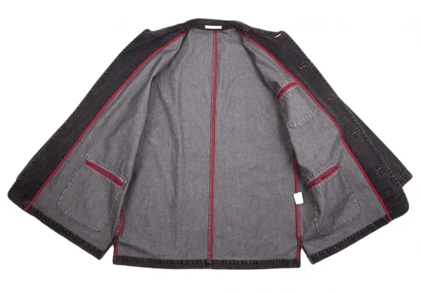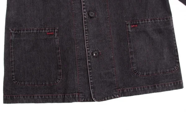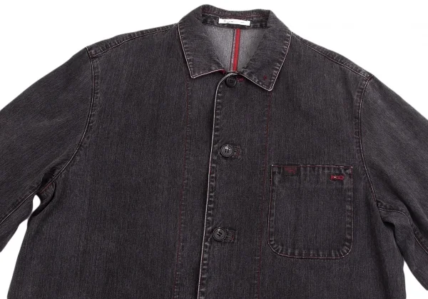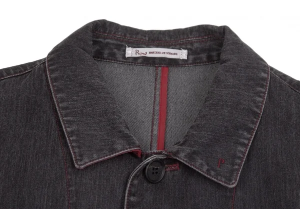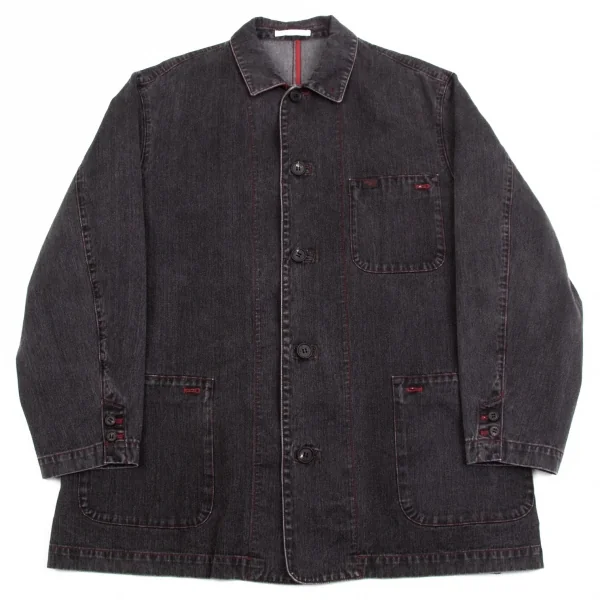 パパスPapas ブラックデニムカバーオールジャケット チャコールL