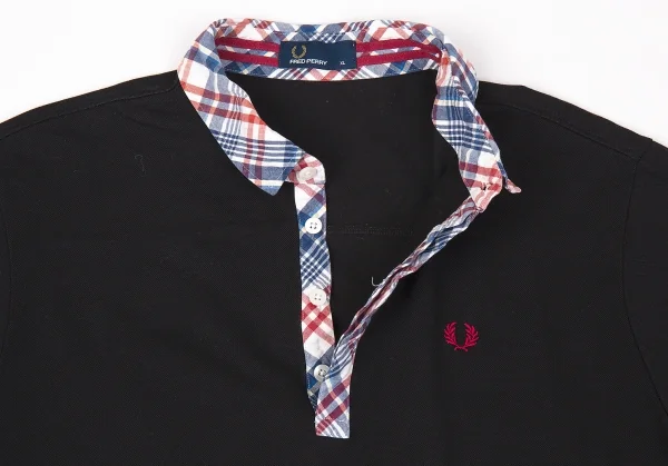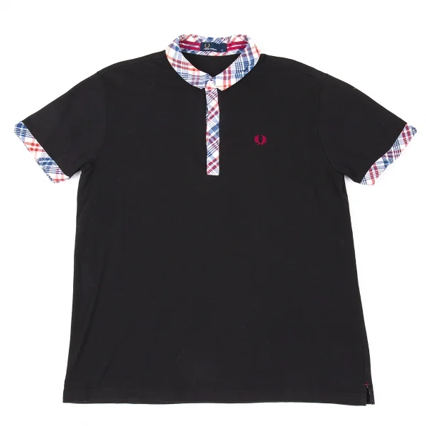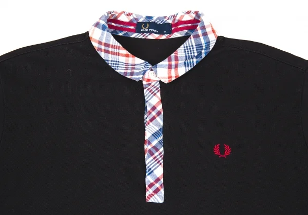 フレッドペリーFREDPERRY チェック切替鹿の子ポロシャツ 黒マルチXL