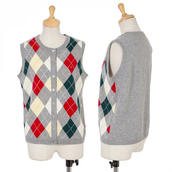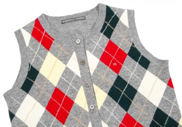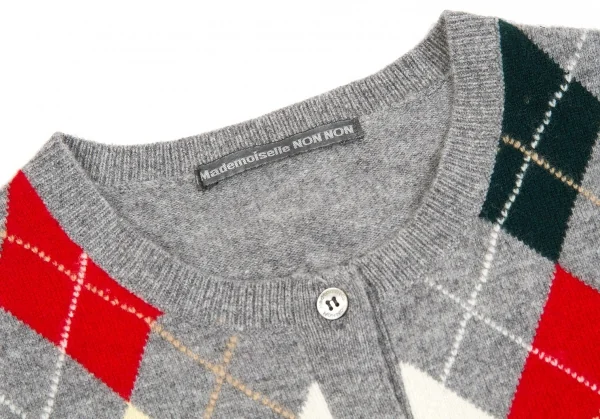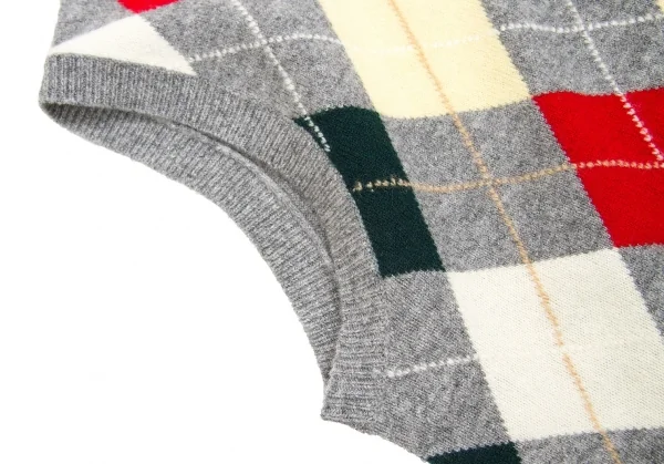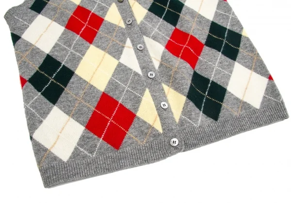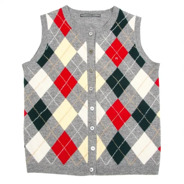 【SALE】マドモアゼルノンノンMademoiselle NON NON アーガイルニットベスト 杢グレーマルチM位