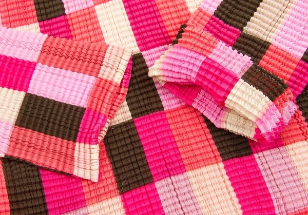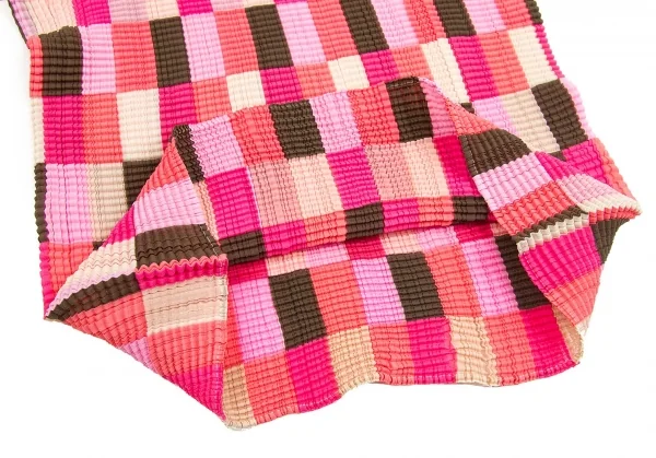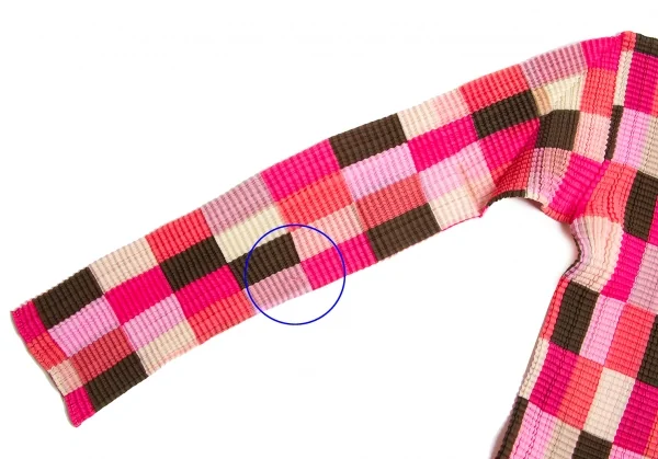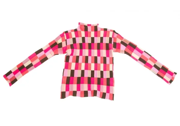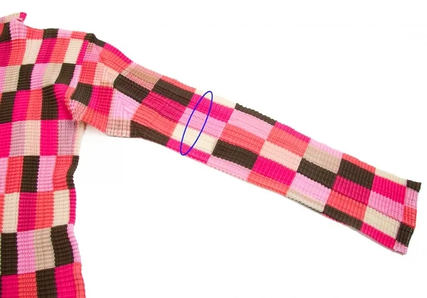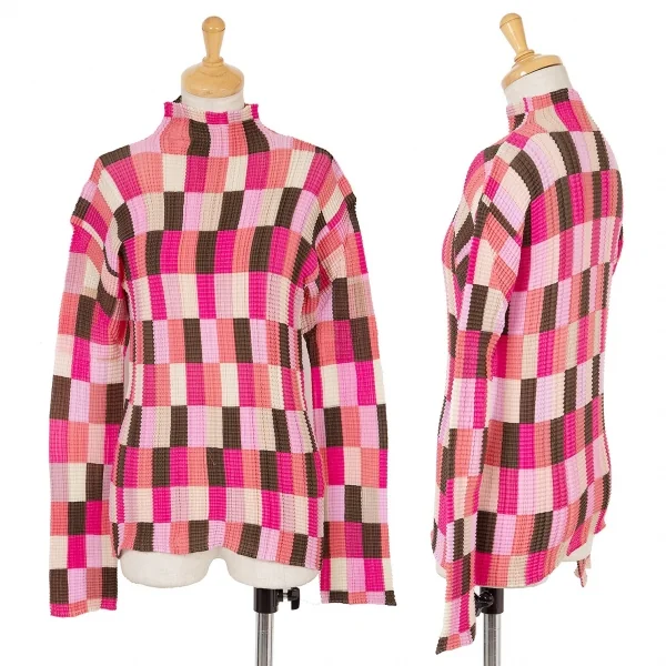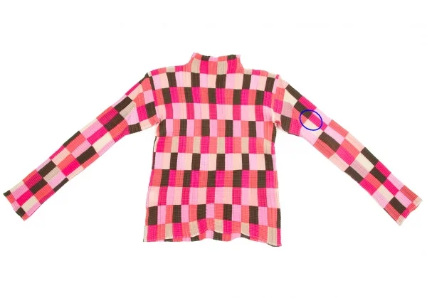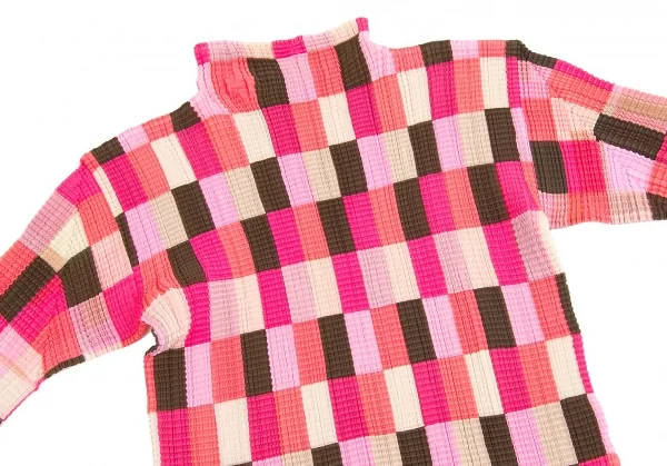 イッセイミヤケ ホワイトレーベルISSEY MIYAKE WHITELABEL ブロックチェックボックスプリーツモックネックカットソー 濃淡ピンク他2