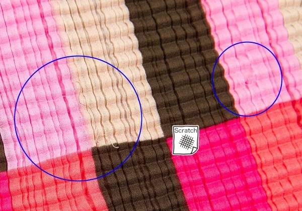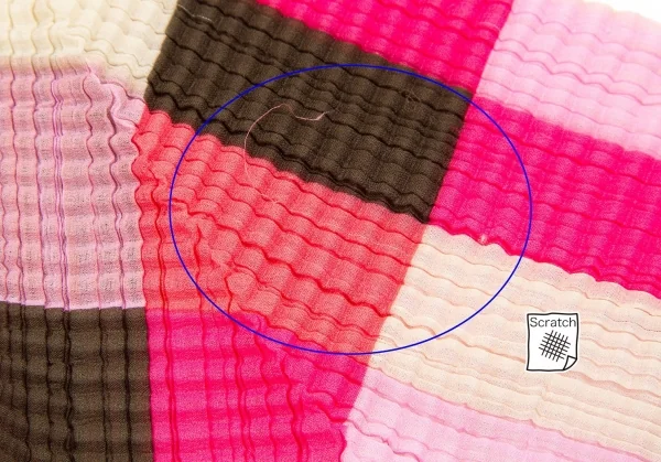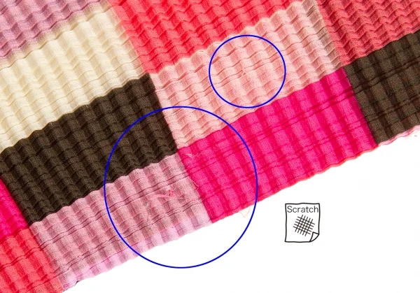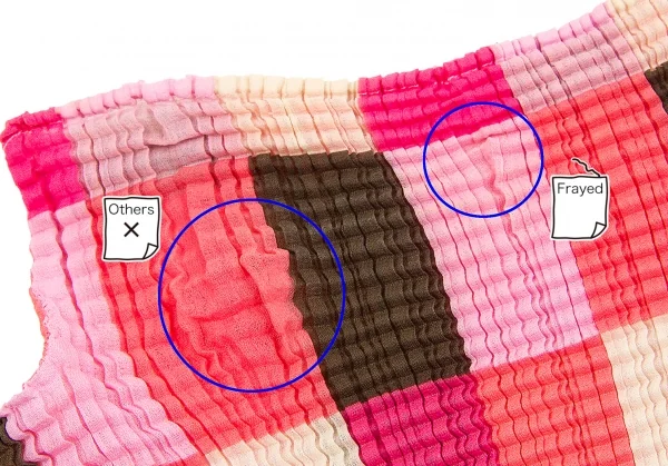 全体的に糸引き、ほつれ多数あります(写真参照)。その他に汚れやシミなどはありません。クリーニング済み