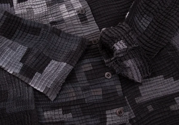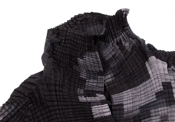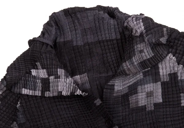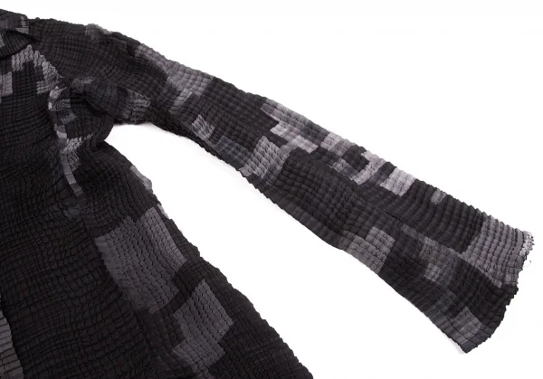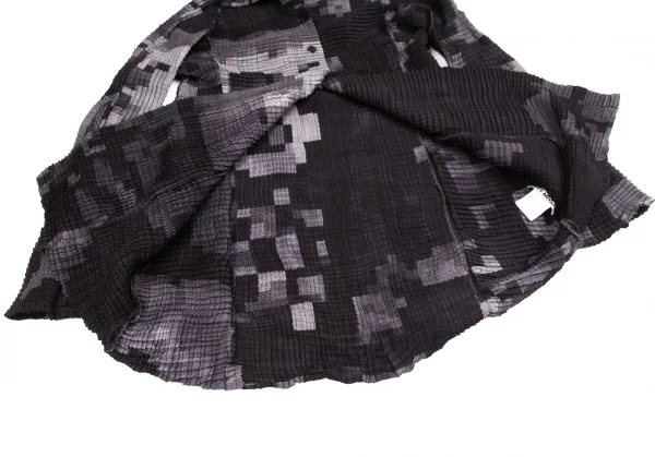 イッセイミヤケISSEY MIYAKE ピクセルプリントボックスプリーツブラウス 濃淡グレー他2