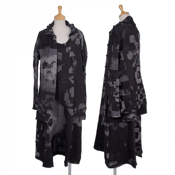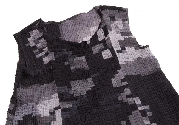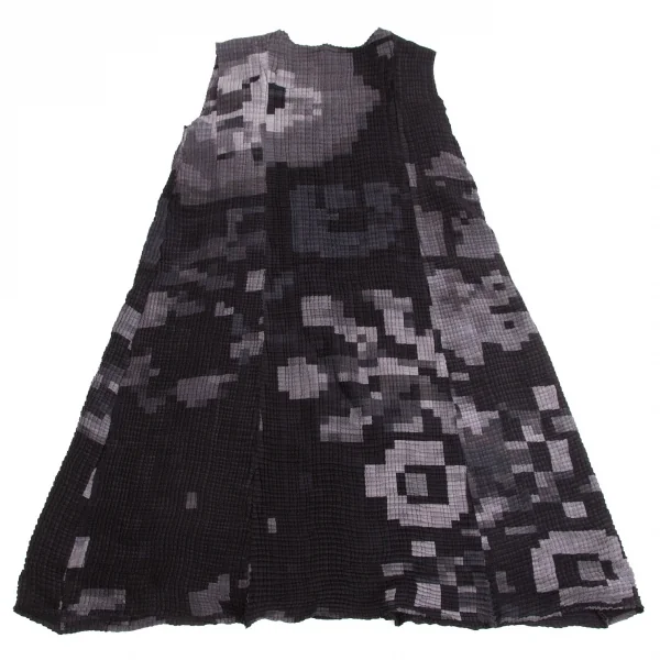 イッセイミヤケISSEY MIYAKE ピクセルプリントボックスプリーツノースリーブワンピース 濃淡グレー他2