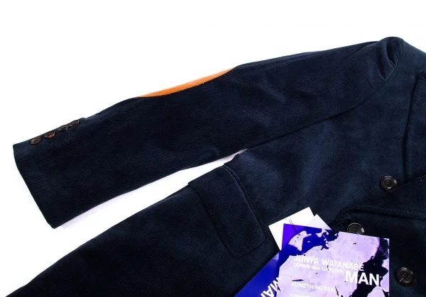 ジュンヤワタナベマン コムデギャルソンJUNYA WATANABE MAN COMME des GARCONS エルボーパッチコーデュロイロングジャケット 紺他S