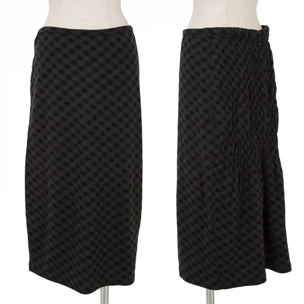 【SALE】コムデギャルソンCOMME des GARCONS ウールバイアスチェックバックシャーリングギャザースカート グレーM位
