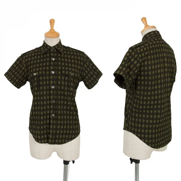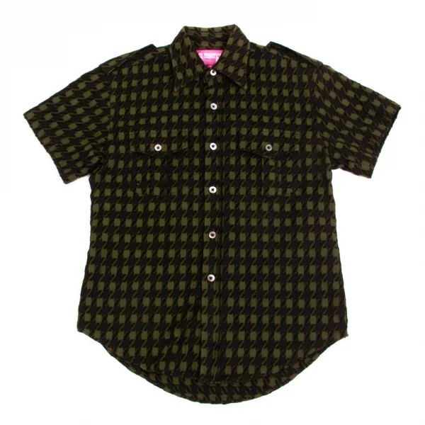 【SALE】ジュンヤワタナベマンピンク コムデギャルソンJUNYA WATANABE MAN PINK COMME des GARCONSチェック織りエポレット半袖シャツ カーキ黒M