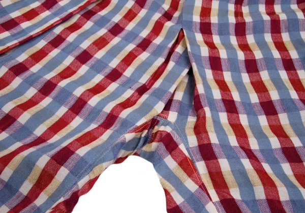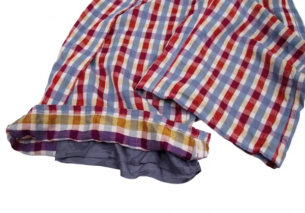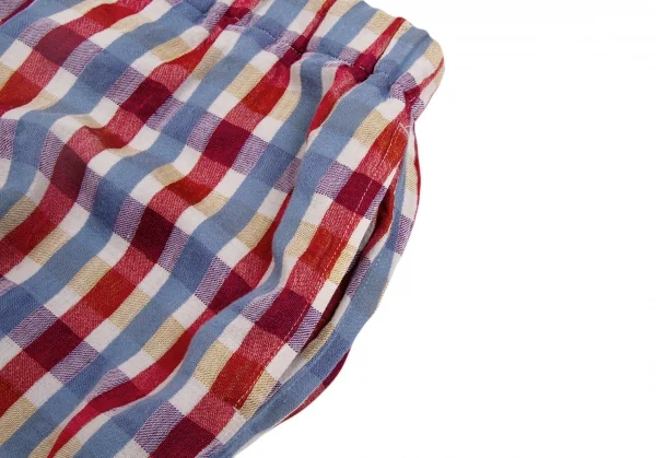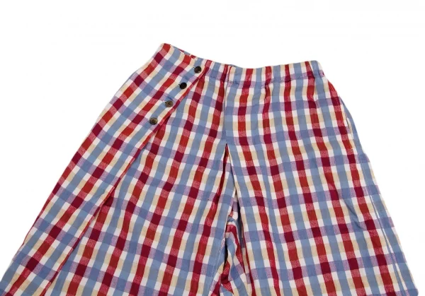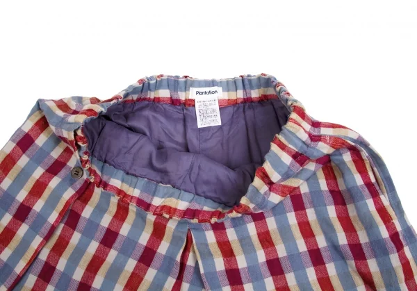 プランテーションPlantation チェックワイドパンツ 赤水色他M位