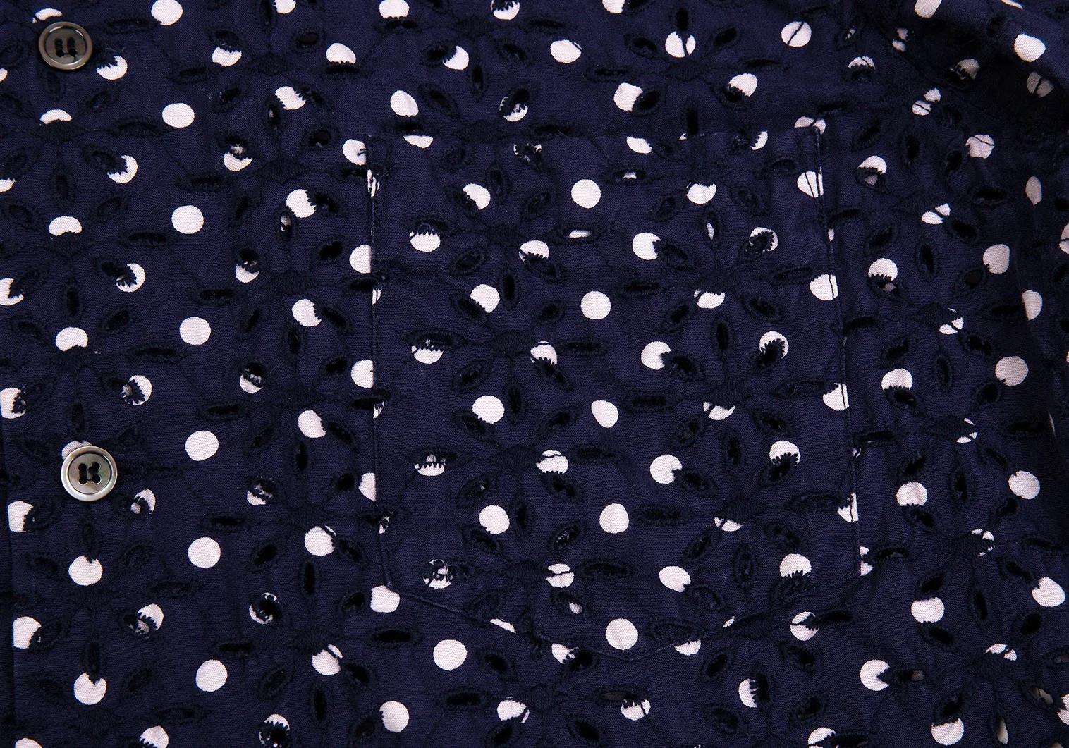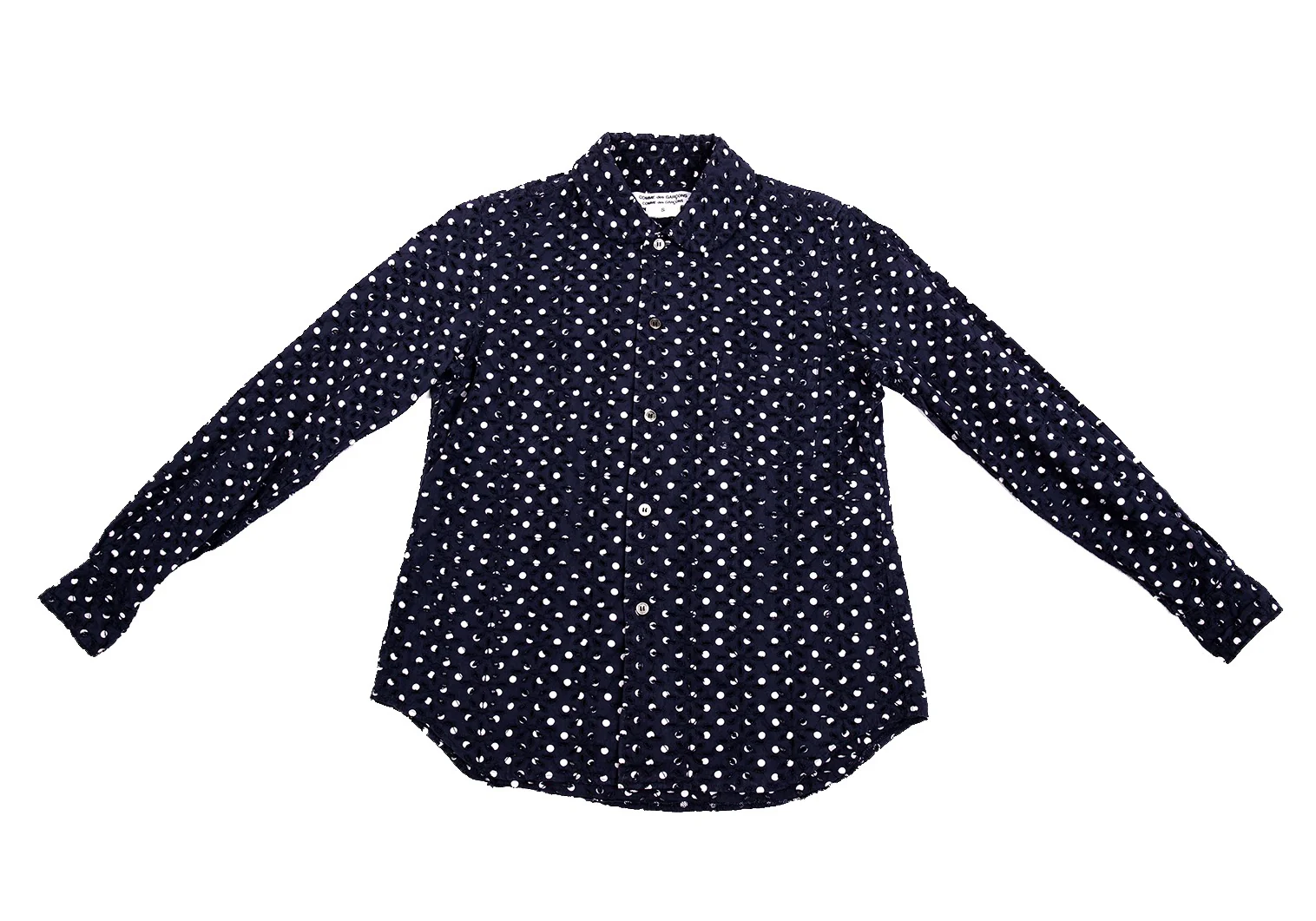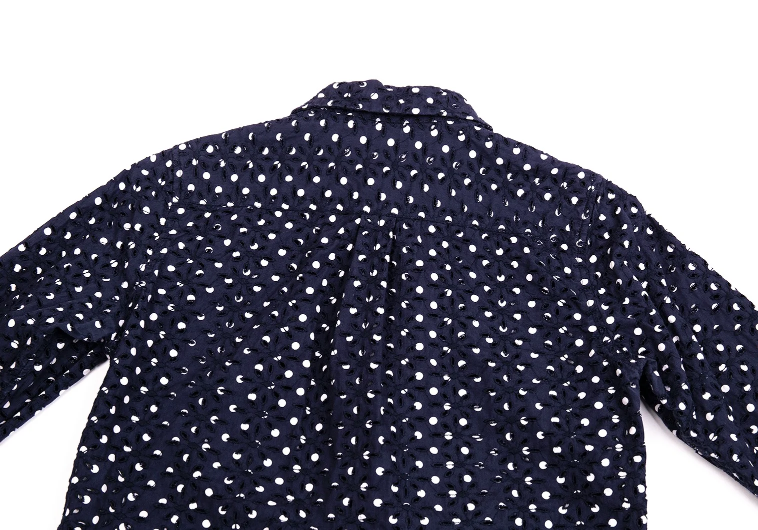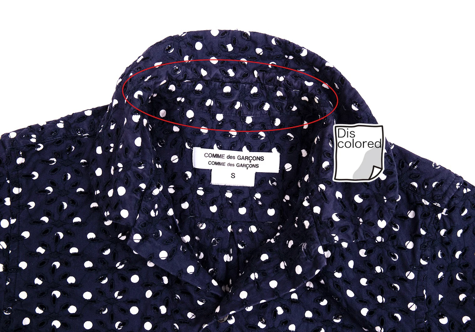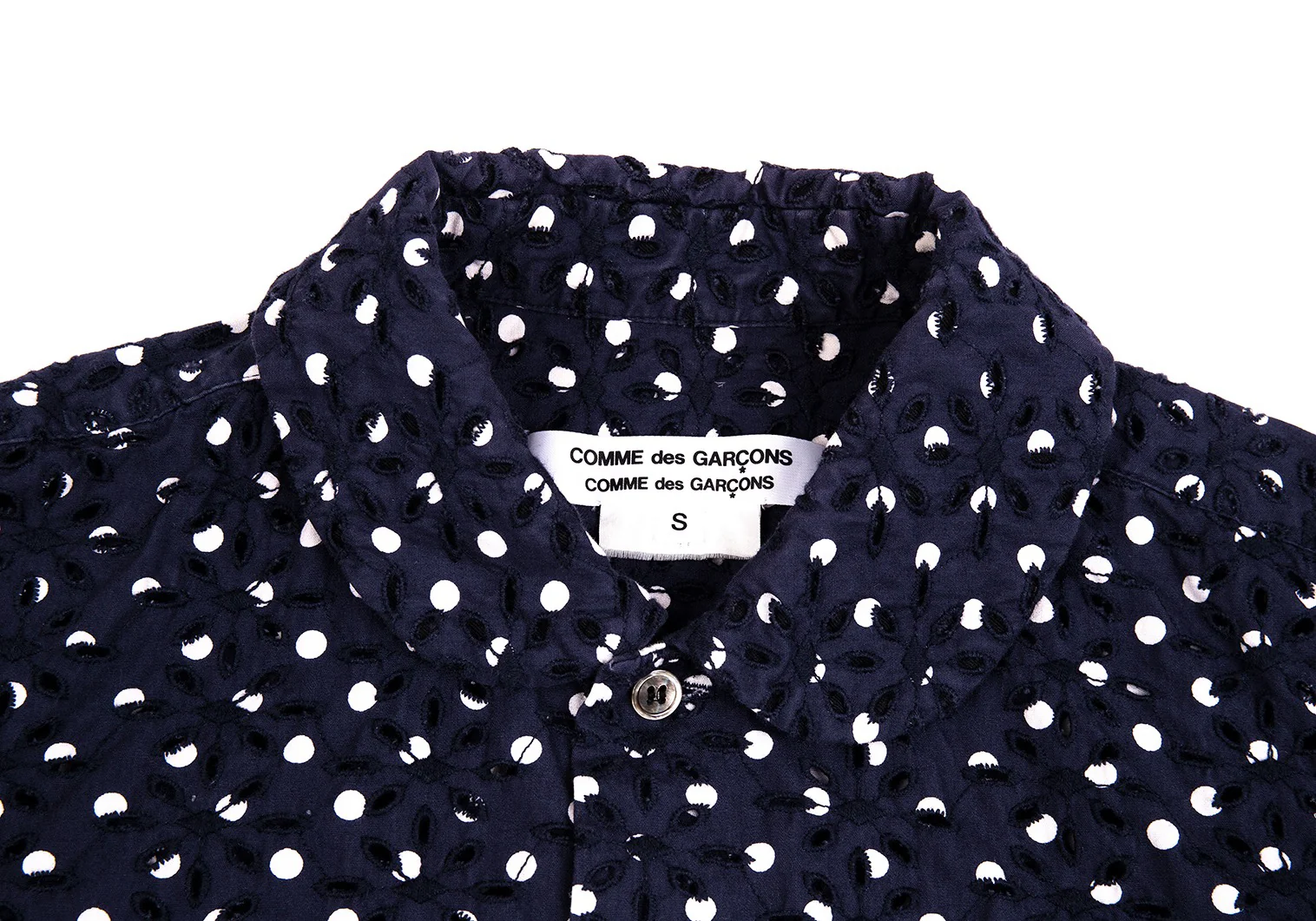 【SALE】コムコム コムデギャルソンCOMME des GARCONS ドットプリントエンブロイダリーレースラウンドカラーシャツ 紺白S