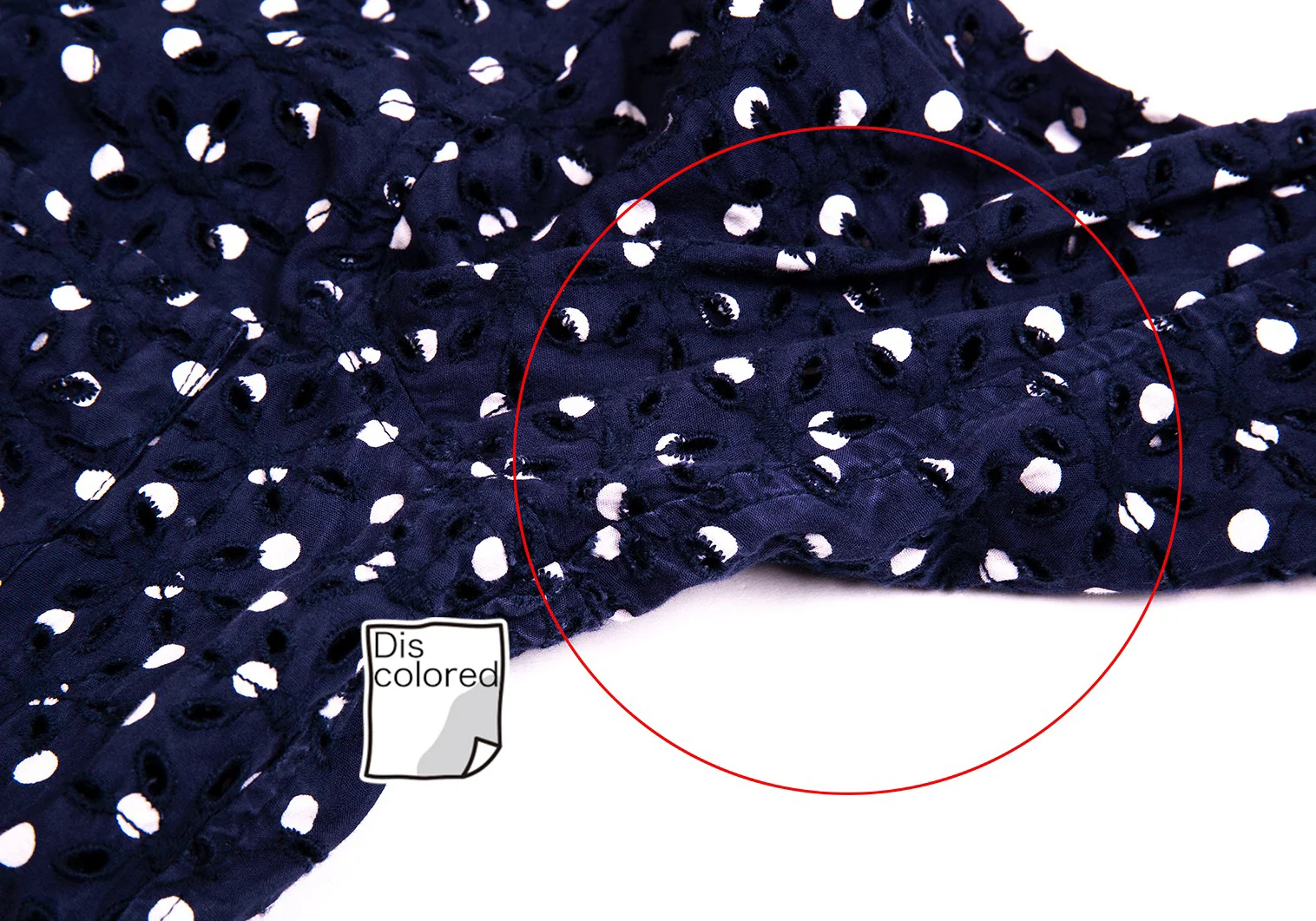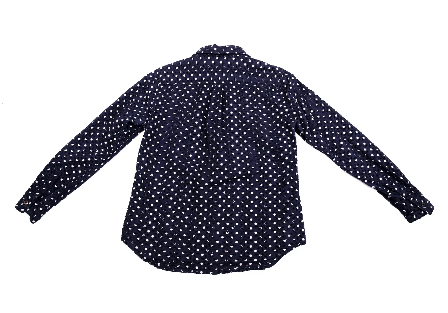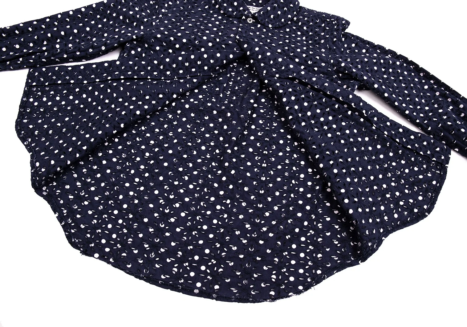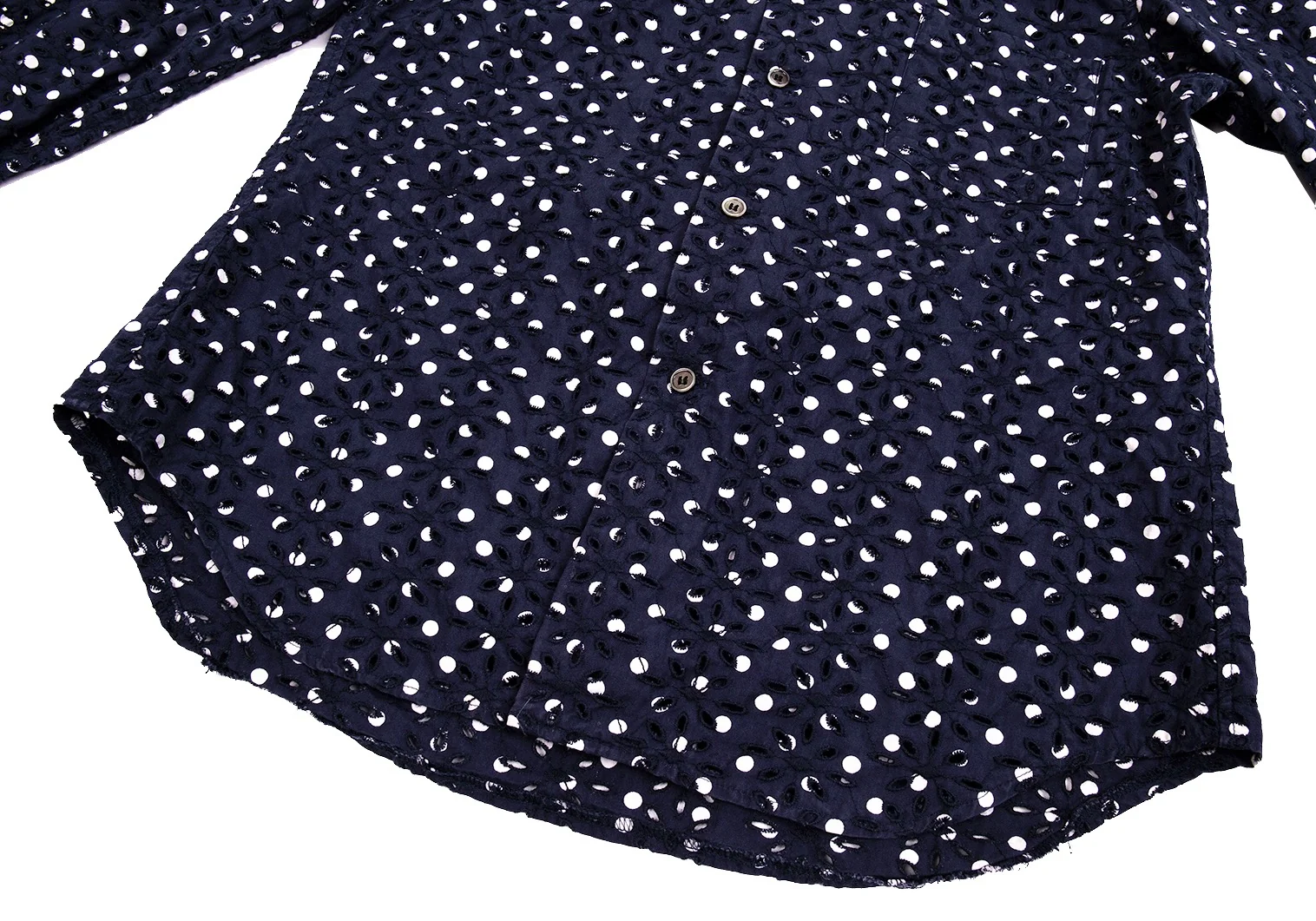 【SALE】コムコム コムデギャルソンCOMME des GARCONS ドットプリントエンブロイダリーレースラウンドカラーシャツ 紺白S