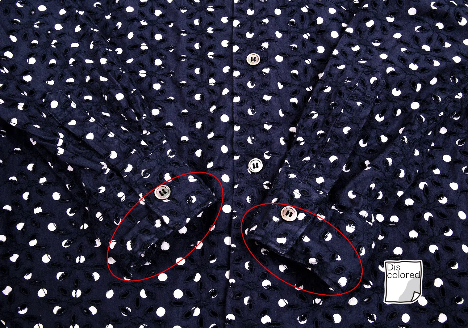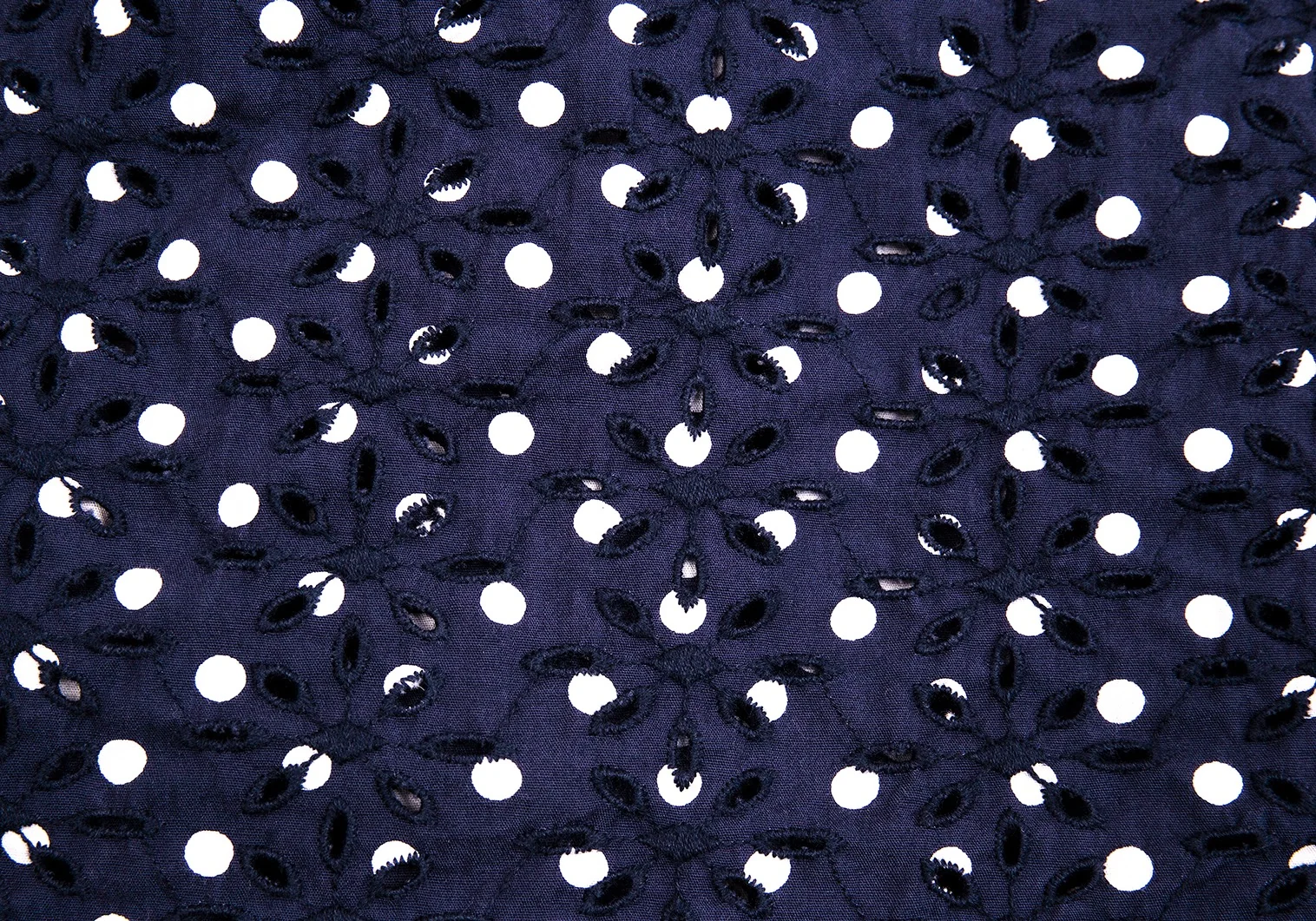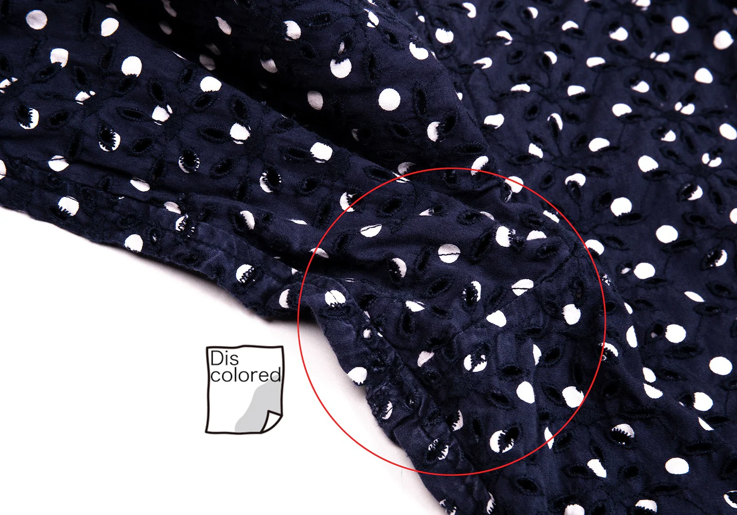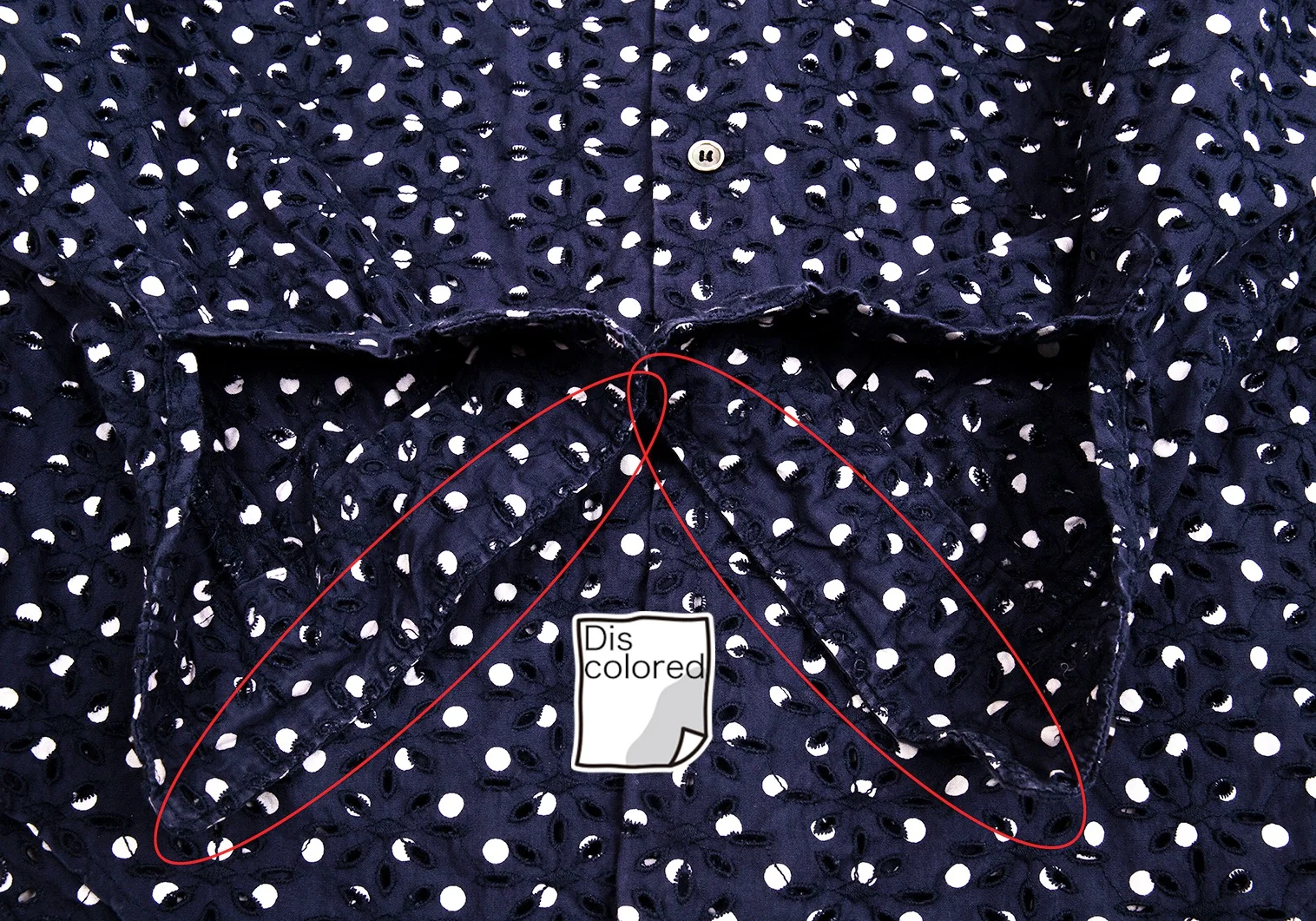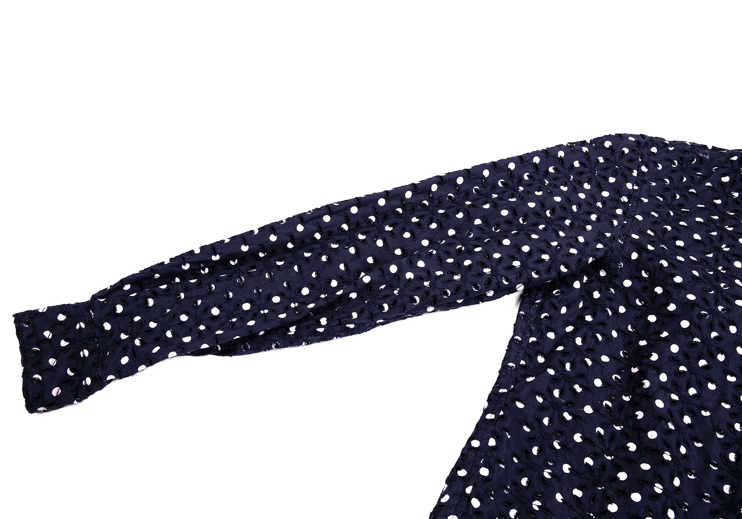 【SALE】コムコム コムデギャルソンCOMME des GARCONS ドットプリントエンブロイダリーレースラウンドカラーシャツ 紺白S