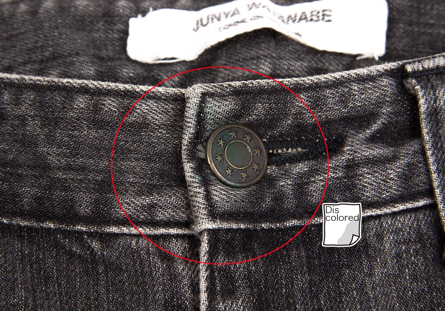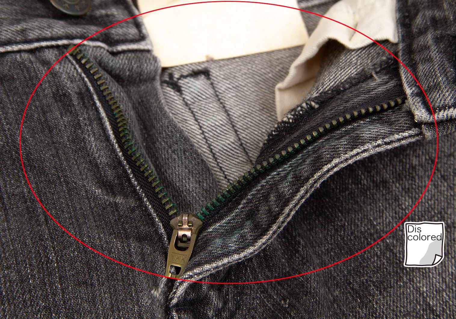 ボタン付近・ファスナーに変色、両裾先にダメージがあります(画像参照)。その他に目立ったシミ、汚れ、ほつれ等ありません。クリーニング済み