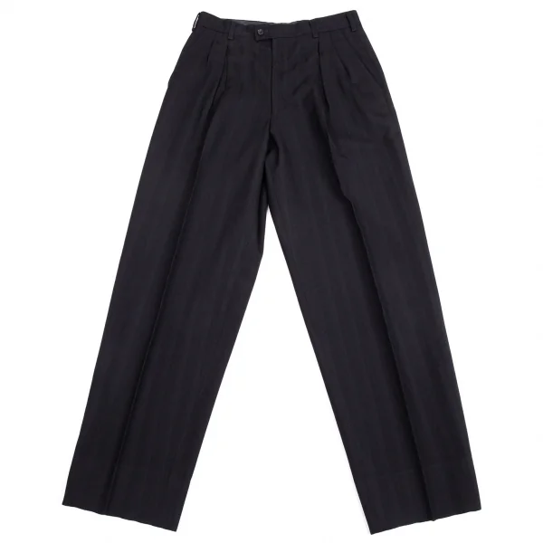 コムデギャルソン オムCOMME des GARCONS HOMME ウールシャドーストライプツータックパンツ 濃紺L
