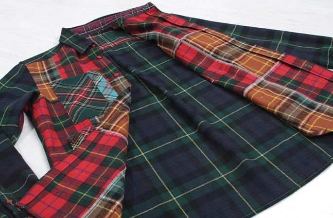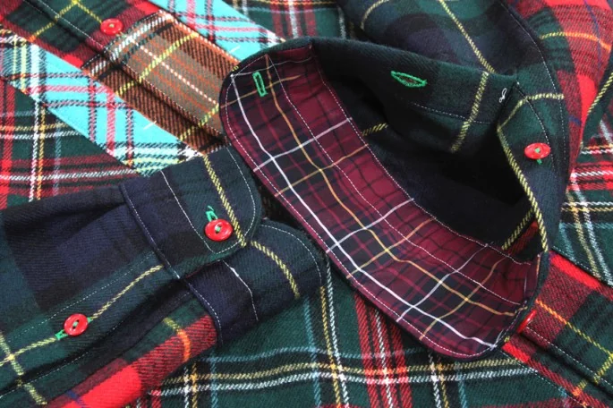 新品!ガンリュウGANRYUコムデギャルソンCOMME des GARCONS タータンパッチワークシャツジャケット 赤緑他S