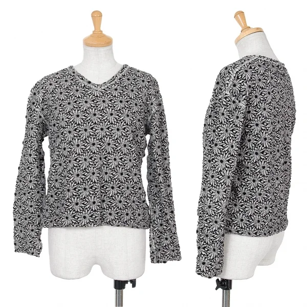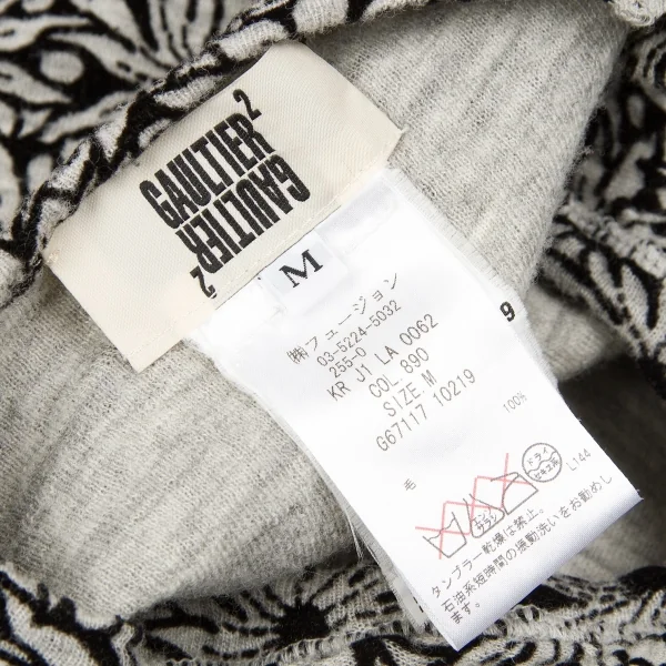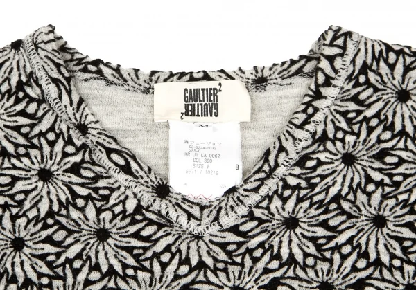 【SALE】ゴルチエトゥーザパワーオブトゥーGAULTIER2 フラワーフロッキープリント二重仕立てカットソー 黒杢グレーM