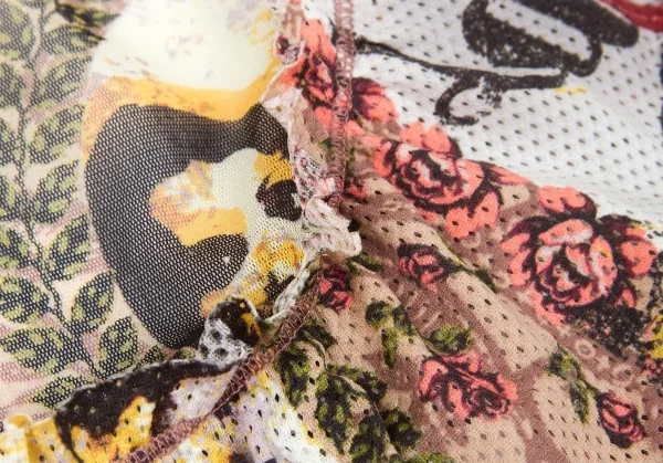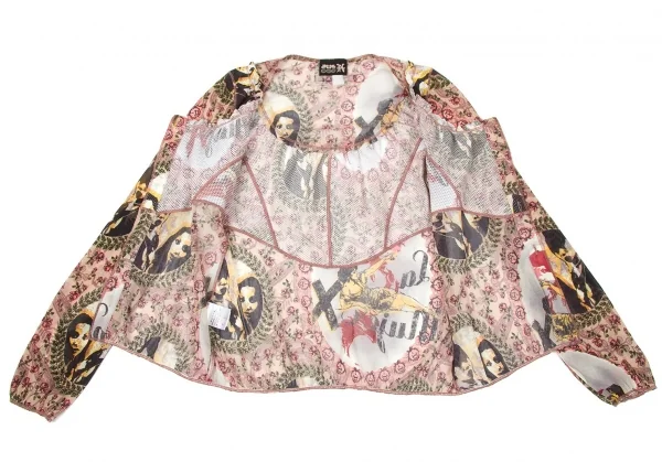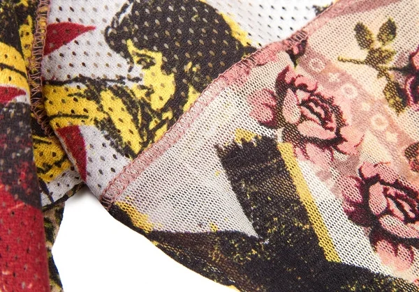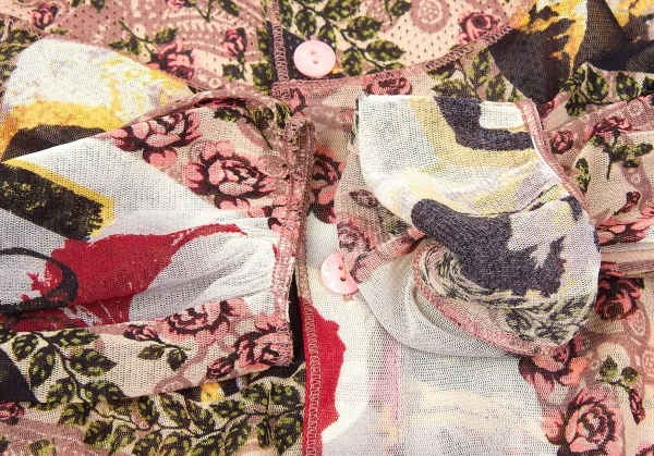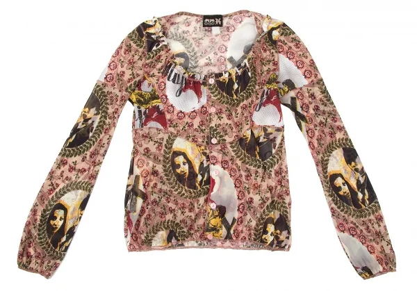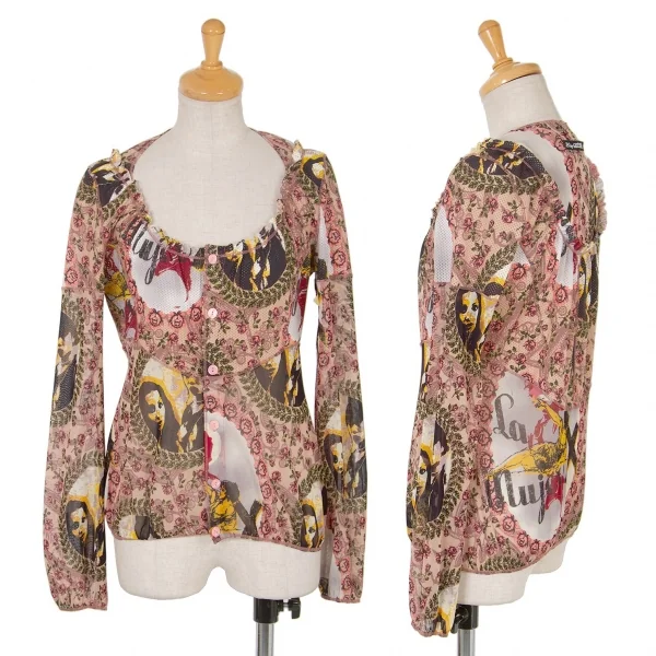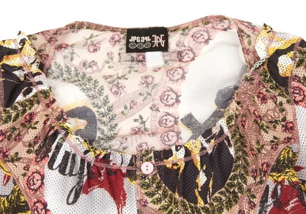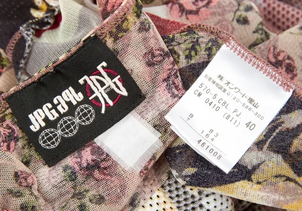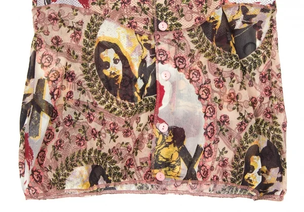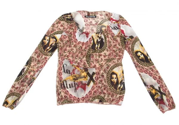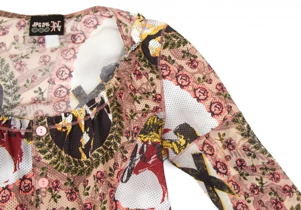 ジャンポールゴルチエJean Paul GAULTIER PARIS グラフィックプリントメッシュ切替パワーネットカーディガン ピンク黒マルチ40