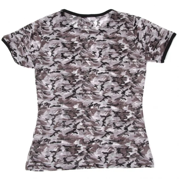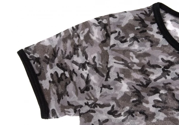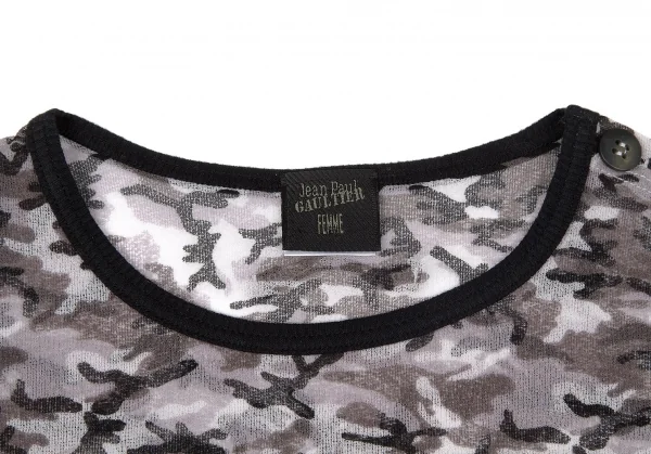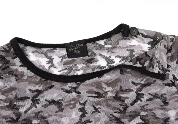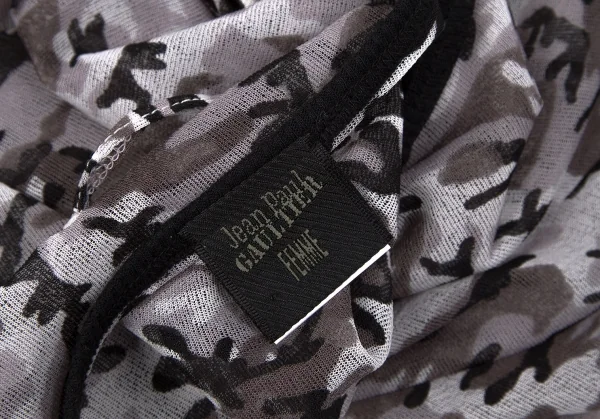 ジャンポールゴルチエ ファムJean Paul GAULTIER FEMME カモフラージュプリントパワーネットTシャツ 黒グレーM
