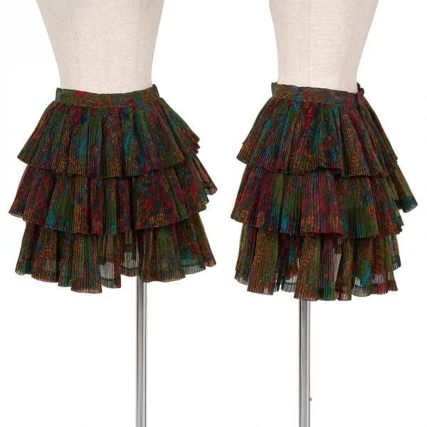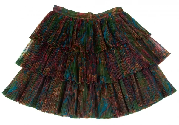 ジャンポールゴルチエ ファムJean Paul GAULTIER FEMME フローラルチュールオルガンプリーツティアードスカート マルチ40
