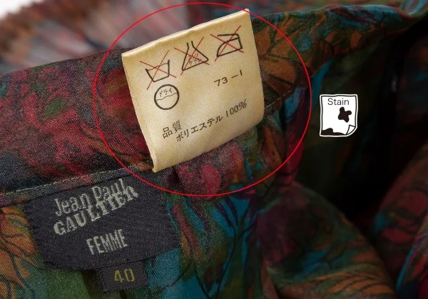 透け感のある生地です。品質タグに変色があります(画像参照)。その他目立ったシミ、汚れ、ほつれ等なくいい状態です。クリーニング済み