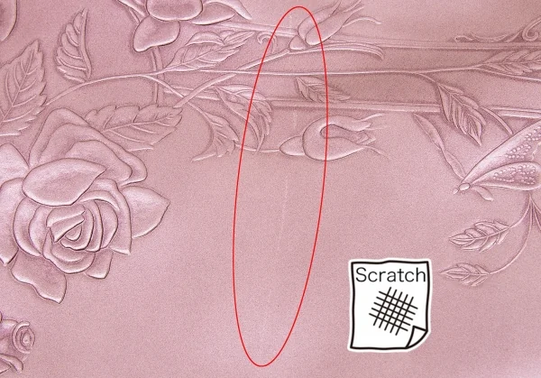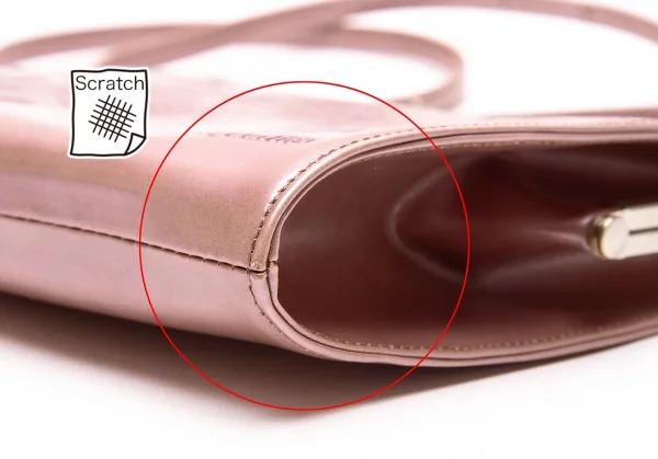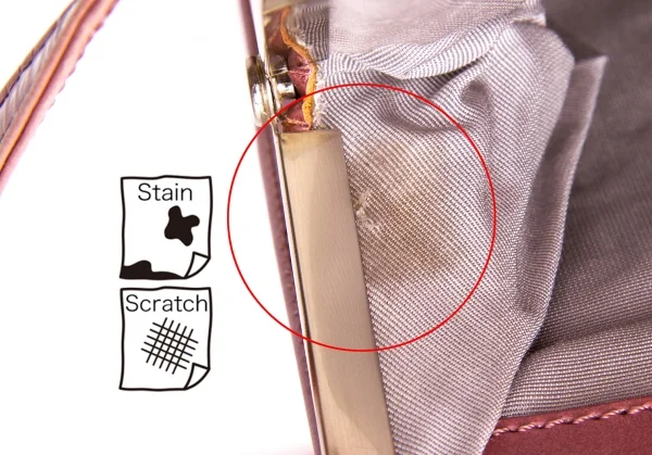 内側ポケットは1つあります。表面にスレ、キズ、ダメージあり、内側に汚れとダメージあり、角と短い持ち手にスレがあります(画像参照)。