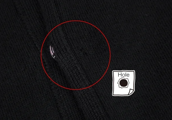 全体的に着用があり、前身頃に小穴があります(画像参照)。その他に目立ったシミ、汚れ、ほつれ等ありません。クリーニング済み
