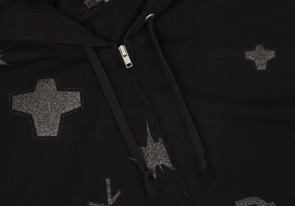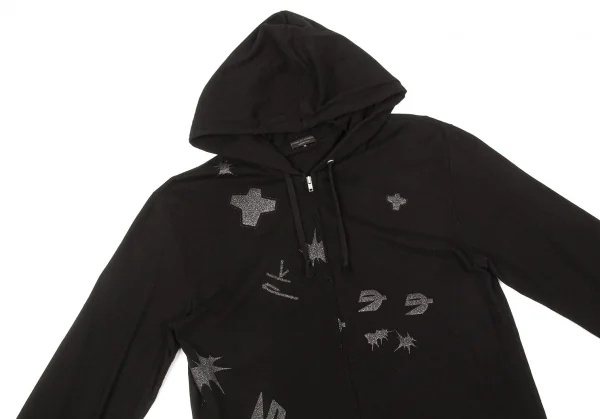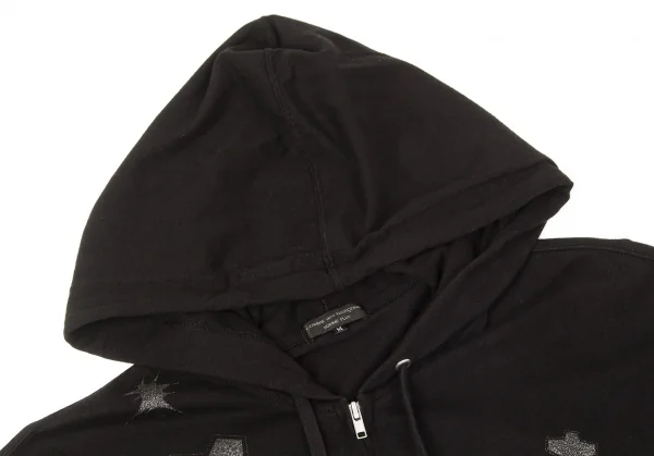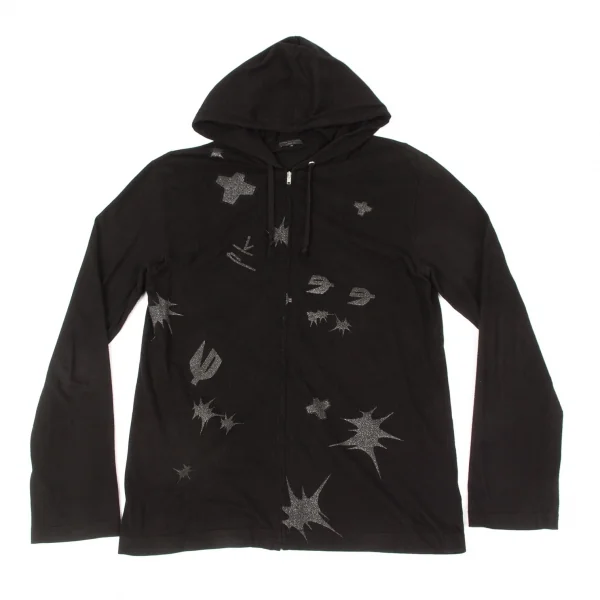 コムデギャルソン オムプリュスCOMME des GARCONS HOMME PLUS フロントグリッタープリントジップアップパーカー 黒M