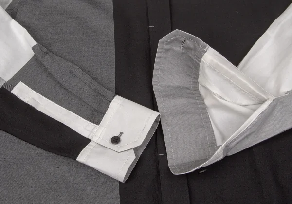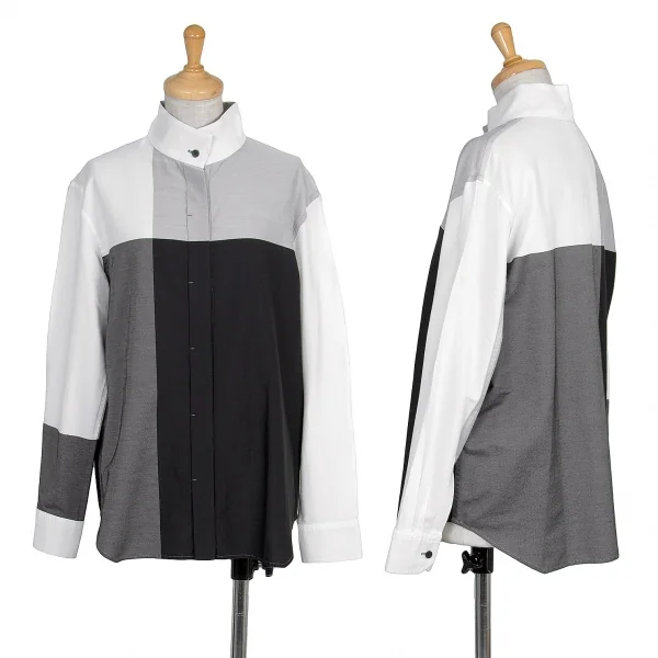 【SALE】イッセイミヤケISSEY MIYAKE コットンポリパネル切替シャツ 白黒他2