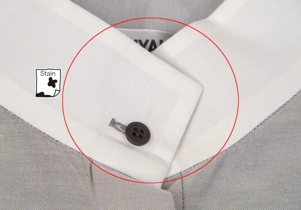 襟元後薄汚れ、左袖にシミがあります(画像参照)。その他に目立ったシミ、汚れ、ほつれ等ありません。クリーニング済み