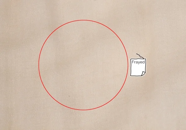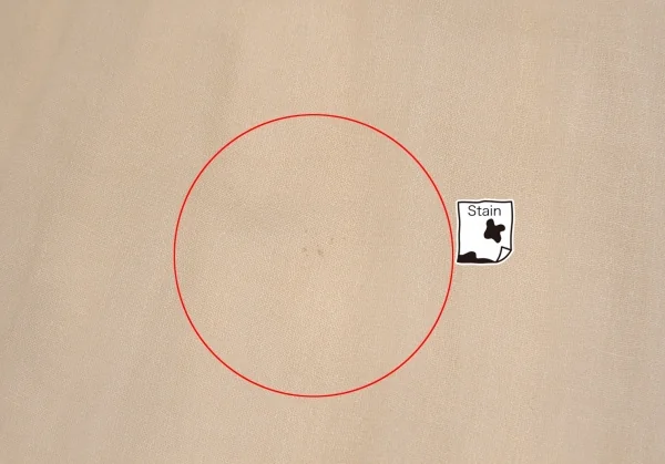 表面に糸引き、シミがあります。透け感のある生地です(画像参照)。その他に目立ったシミ、汚れ、ほつれ等ありません。クリーニング済み