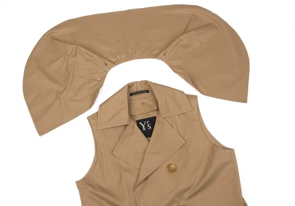 ワイズY's ケープドッキングノースリーブトレンチコート 濃ベージュ1
