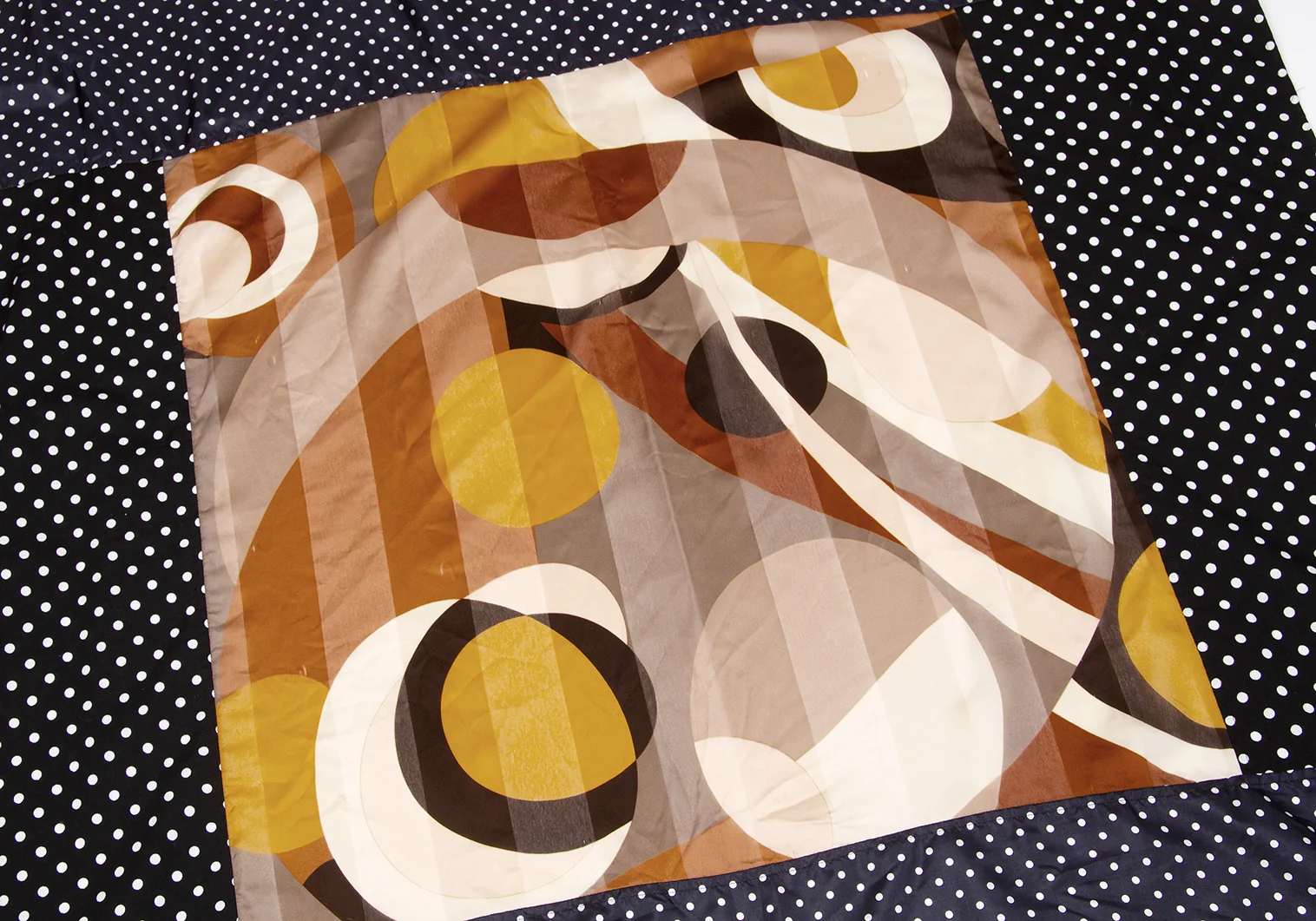 【SALE】コムデギャルソンCOMME des GARCONS ヴィンテージ幾何学切替ドットスカーフ 紺黒カラシ他