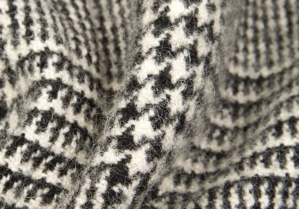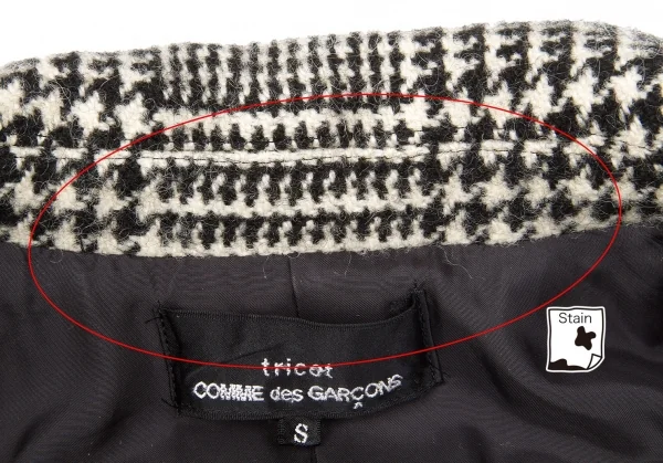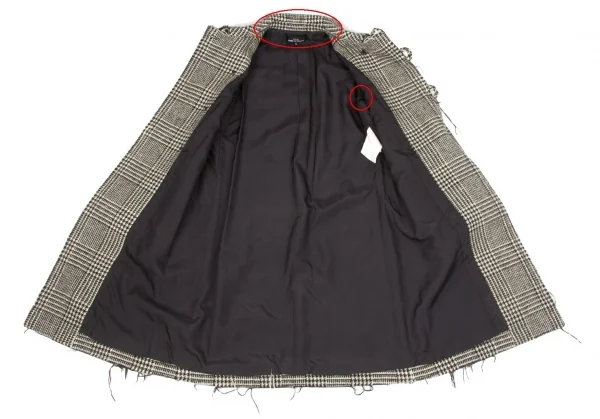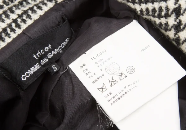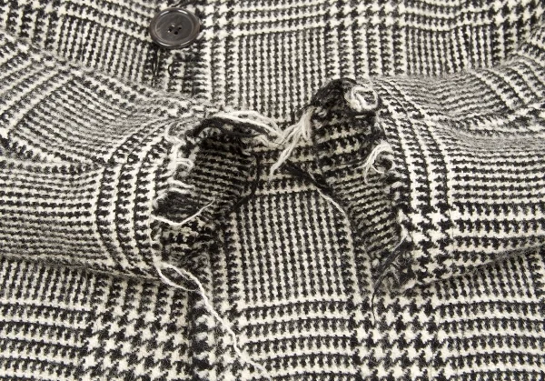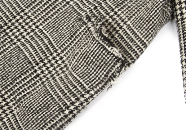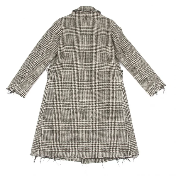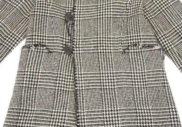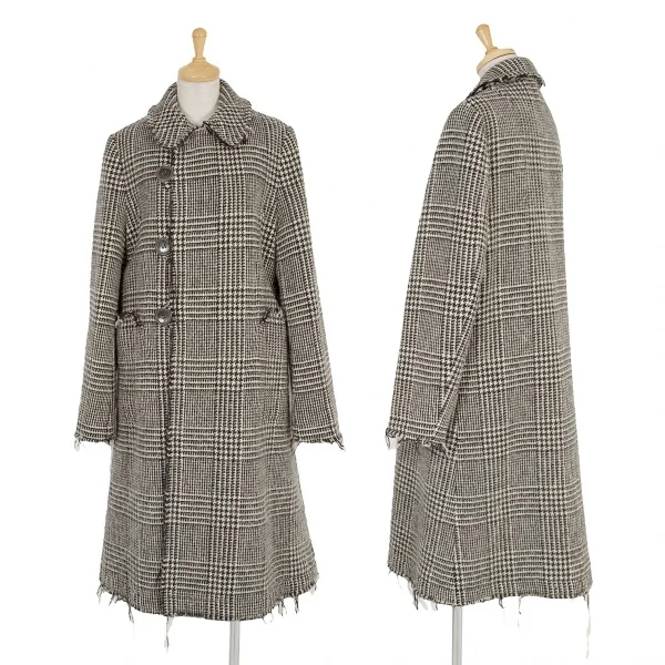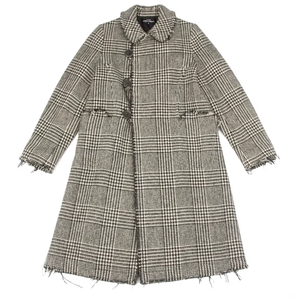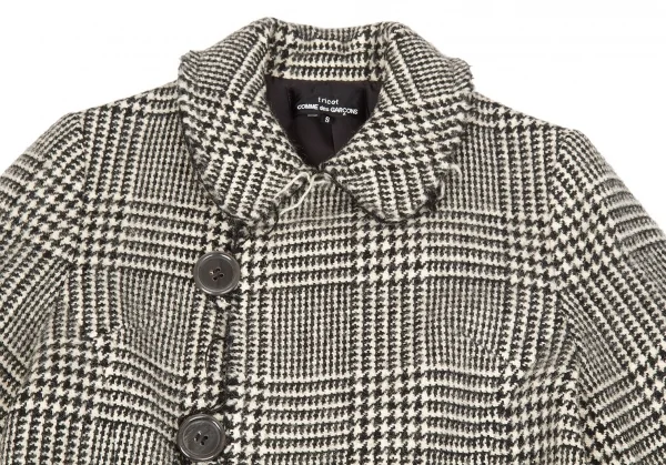 トリココムデギャルソンtricot COMME des GARCONS グレンチェック裁ち切りラウンドカラーコート 黒生成りS