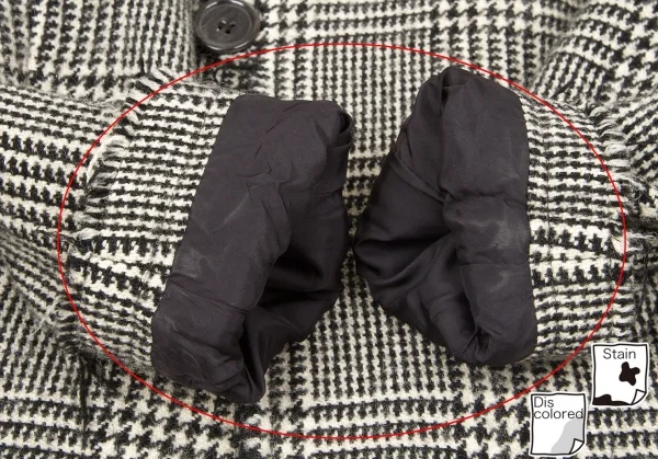 襟裏に汚れ、袖裏に汚れ・色褪せ、裏地左脇にスレがあります(画像参照)。その他目立ったシミ、汚れ、ほつれ等なくいい状態です。クリーニング済み