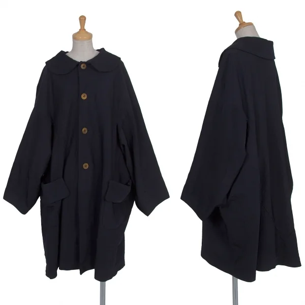 コムコム コムデギャルソンCOMME des GARCONS エステル斜行切替ドルマンラウンドカラービッグシルエットコート 濃紺S