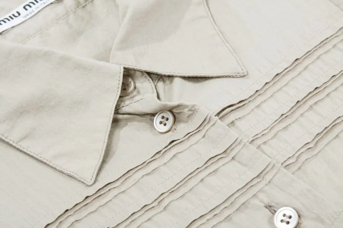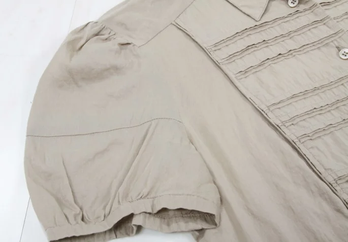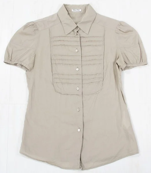 ミュウミュウmiumiu シルク混半袖パフスリーブ綿ブラウス グレー40