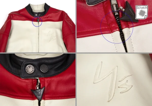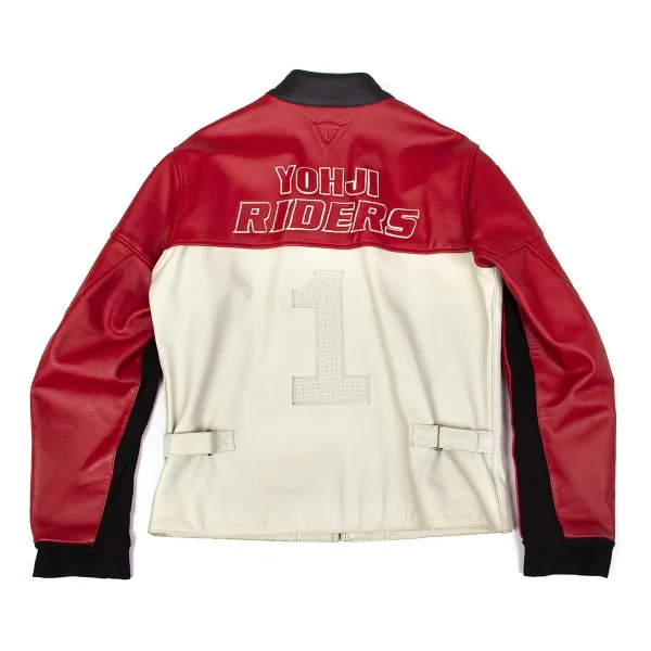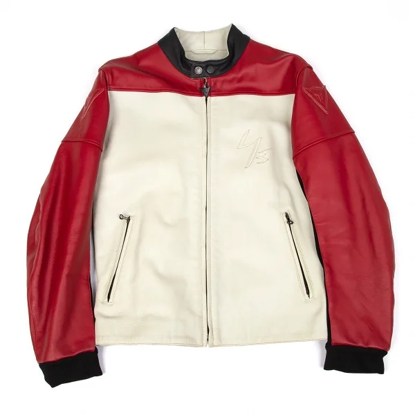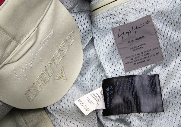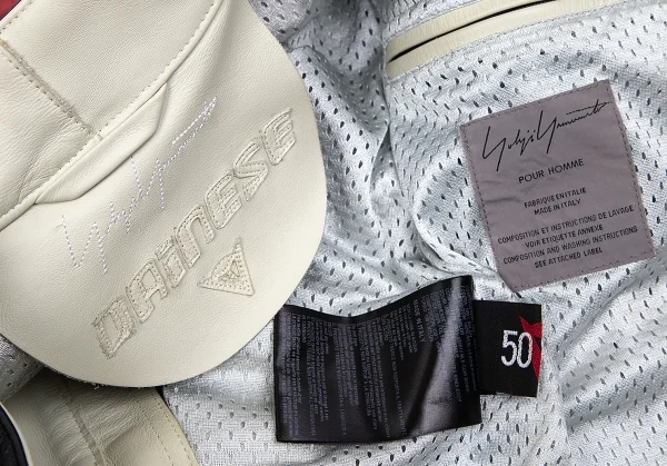 ヨウジヤマモト プールオム×ダイネーゼ Yohji Yamamoto POUR HOMME×DAINESE レザーパッチシングルライダースジャケット ベージュワインレッド50