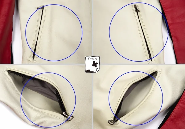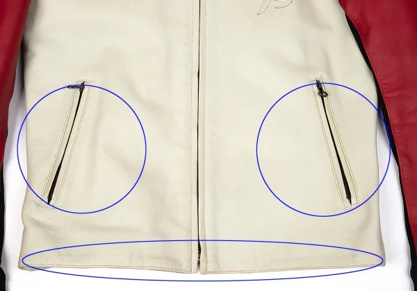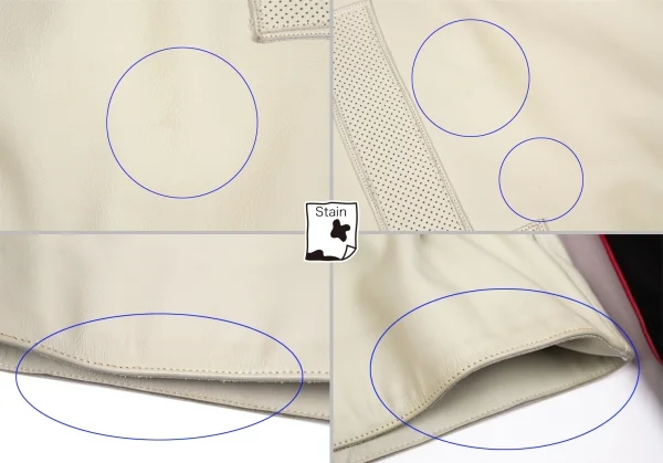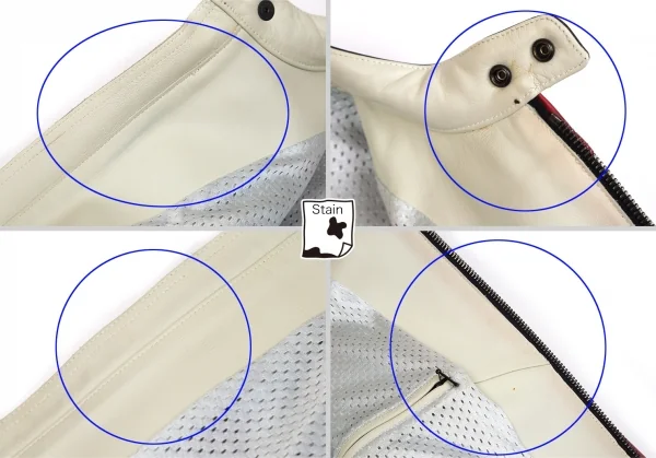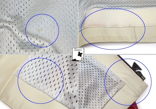 2004A/Wコレクション 前立て襟元にキズがあります。前身頃ポケット周り・ポケット内側に薄汚れがあります。裾のステッチ全体にシミがあります。袖裏にシミがあります。裏地にシミ・薄汚れがあります。後身頃に薄汚れがあります。(写真参照)その他に目立ったシミ、汚れ、ほつれ等なくいい状態です。クリーニング済み