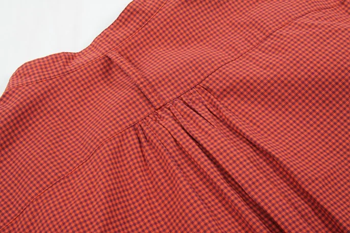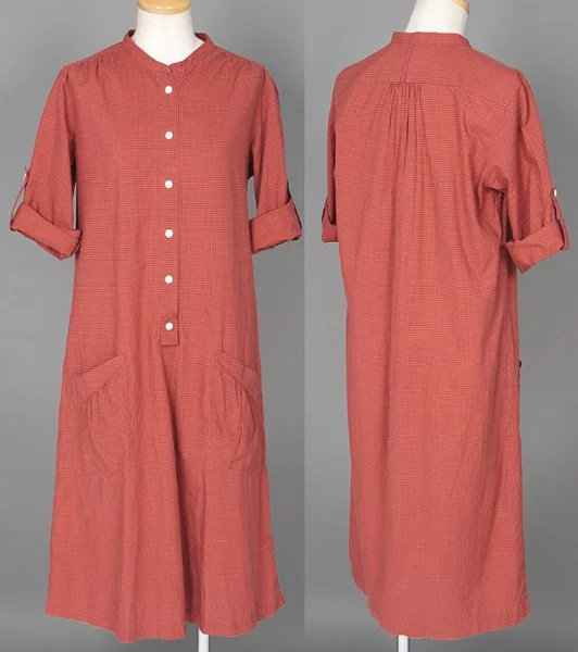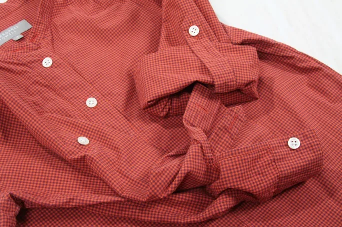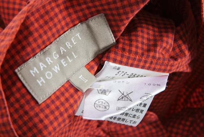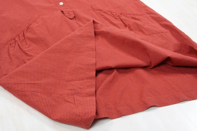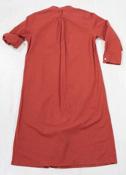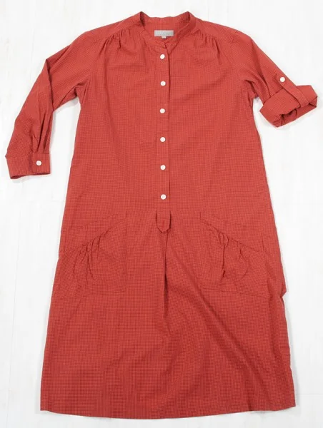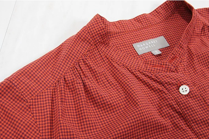マーガレットハウエル MargaretHowel 七分袖チェックシャツワンピース 赤Ⅱ