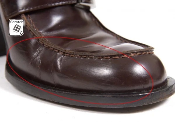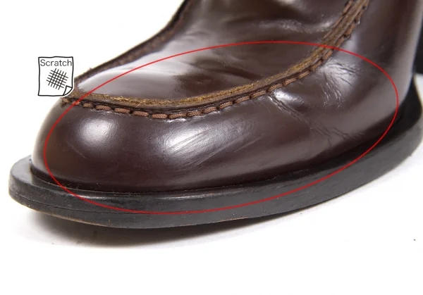踵、ヒール、爪先にスレ、キズ、インソールスレ汚れがあります(写真参照)。全体的に小キズございますが、その他ソールの減りも少なく目立った汚れ、キズ等なくいい状態です。