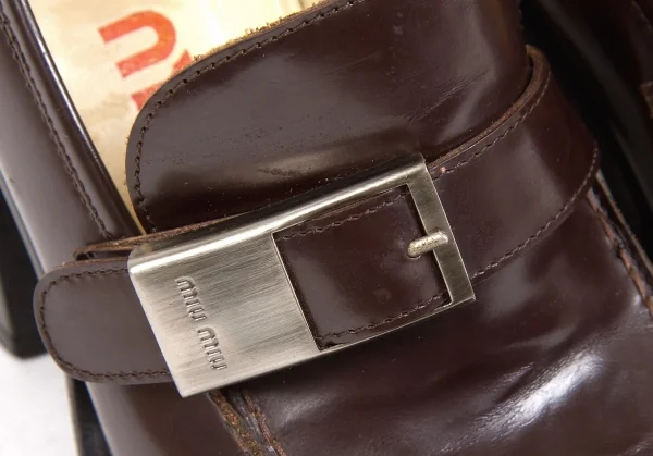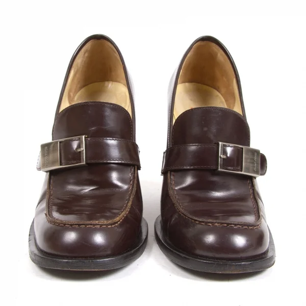 ミュウミュウMIU MIU メタルバックルヒールローファー 茶38(24位)