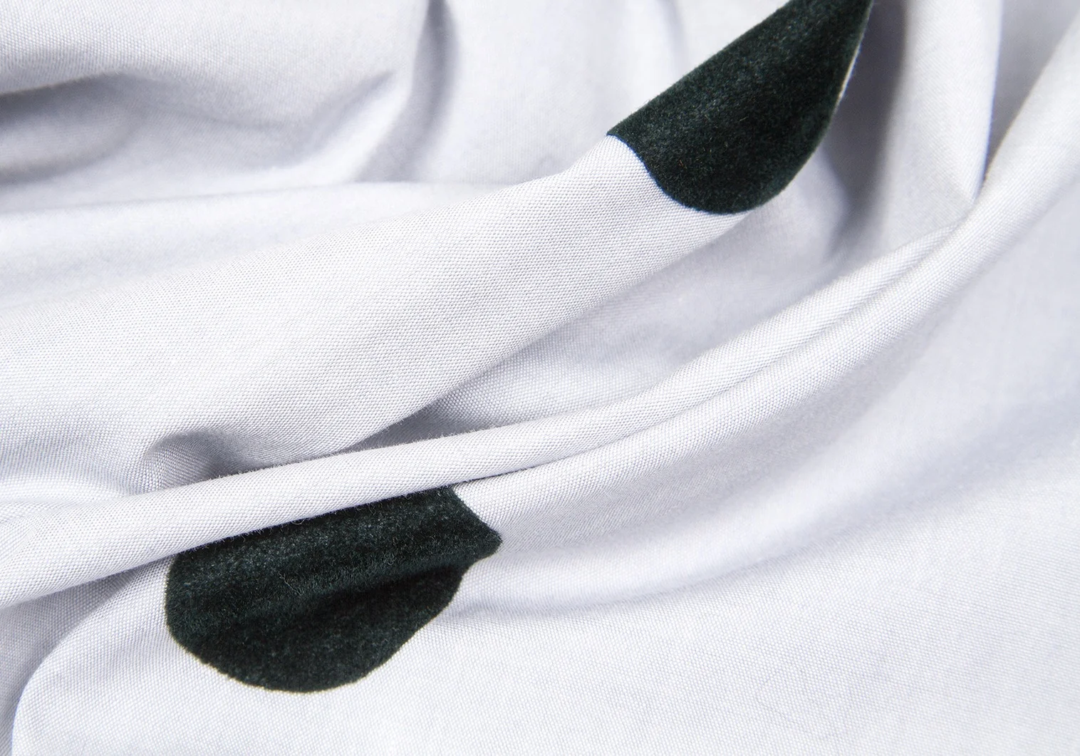 フロッキー部分の色は深緑です。裾、袖裏プリントスレがあります(写真参照)。その他に目立ったシミ、汚れ、ほつれ等なくいい状態です。クリーニング済み
